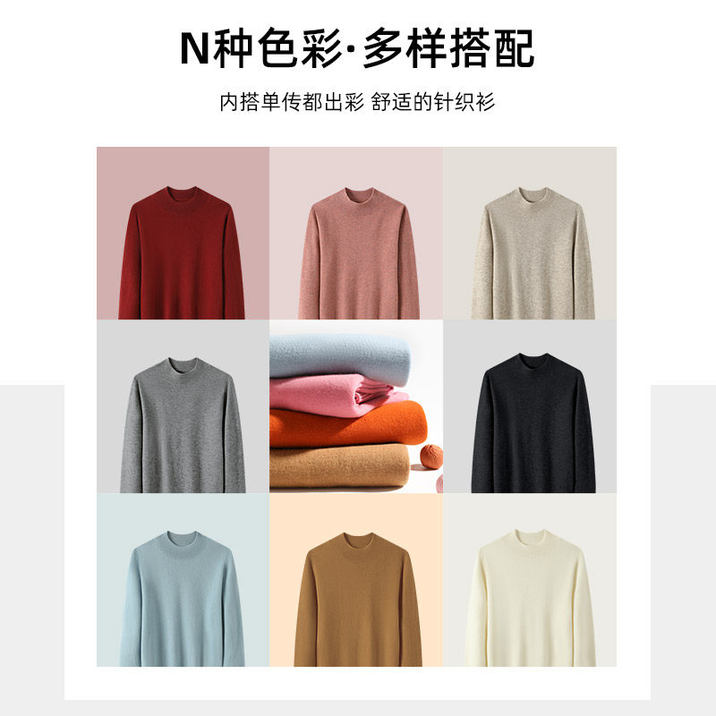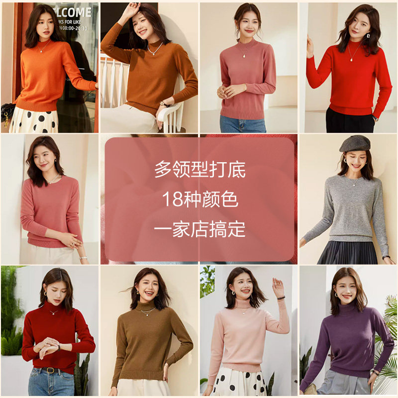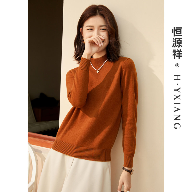 Hengyuan Xiang Half High collar needlework Shirts Women Pure Sheep Sweatshirt Autumn Winter New Pure color sleeves Warm Inner Hitch Base Sweater-Taobao