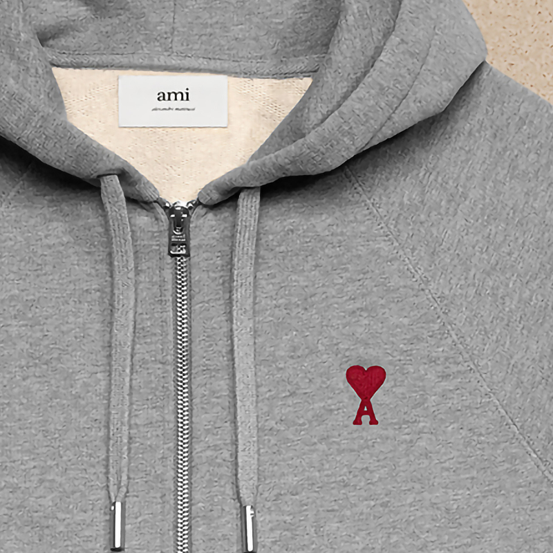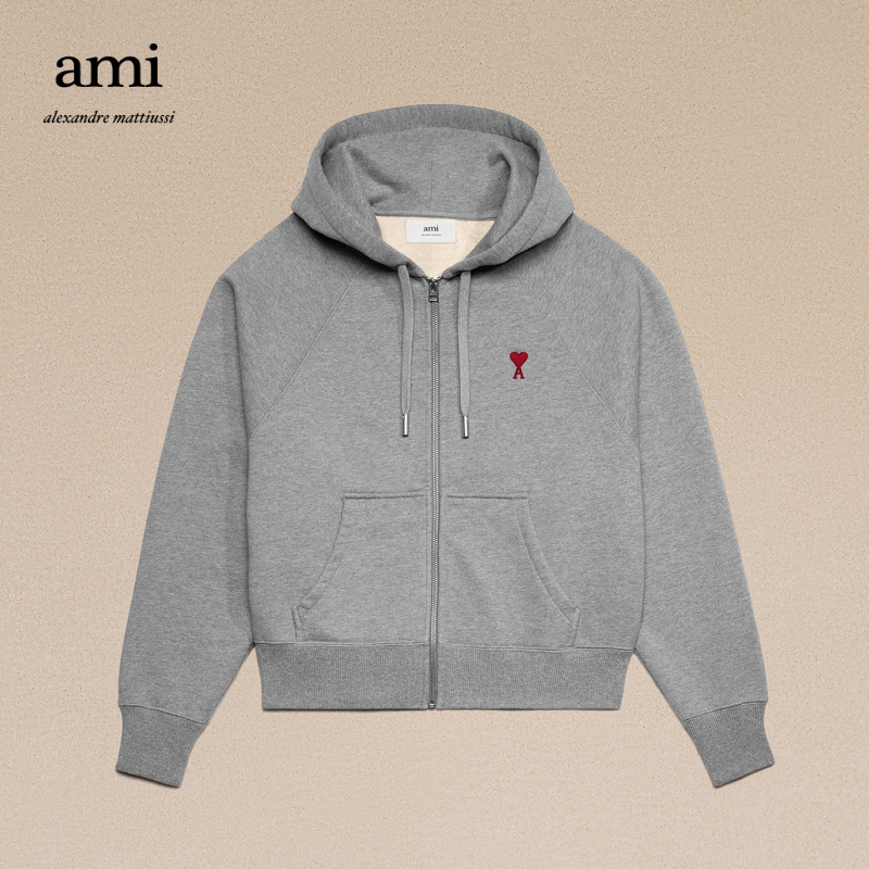 AMI male and female hominin 23 autumn winter new red loving embroidered cotton casual connected hat zipped sweatshirt-Taobao