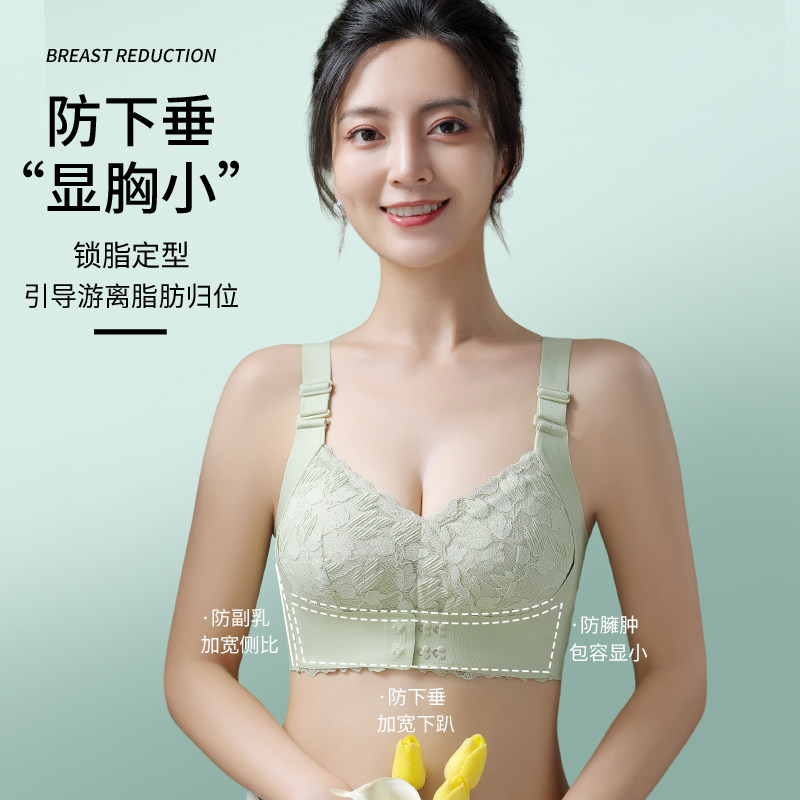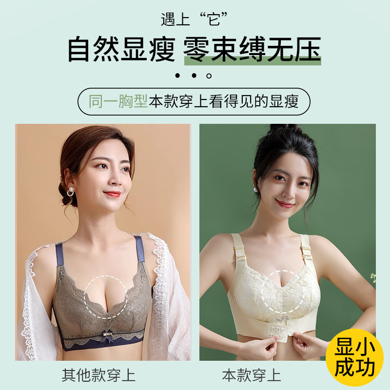 Cat person front button lingerie female large chest full cups bra closeted breast proof saggy No steel ring big code bra-Taobao