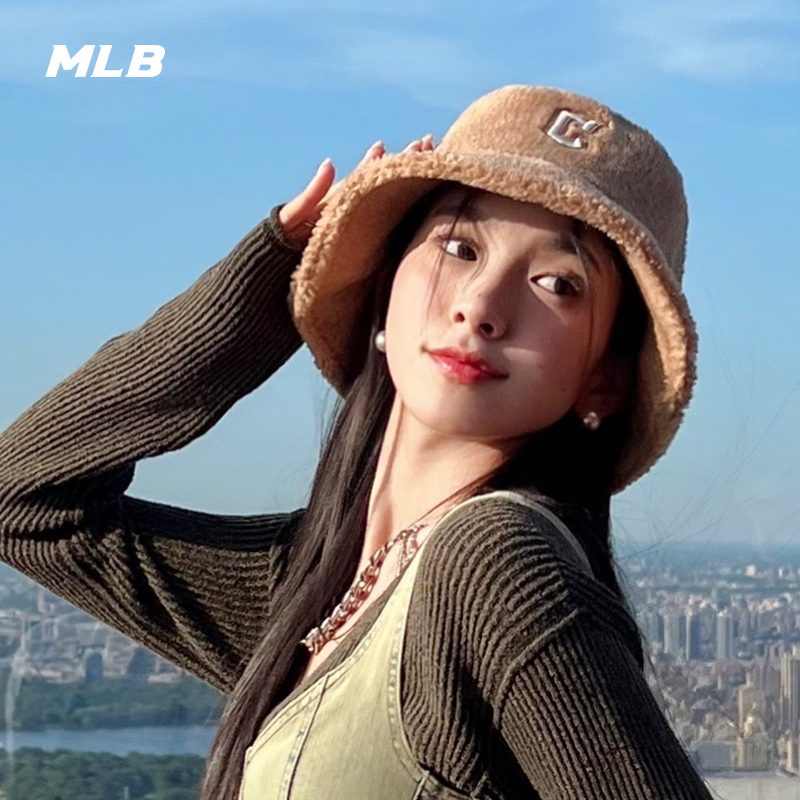 MLB Official Male And Female Lovers Small Logo Fisherman Hood Imitation Lamb Suede Leisure 23 Autumn Winter New HTF01-Taobao