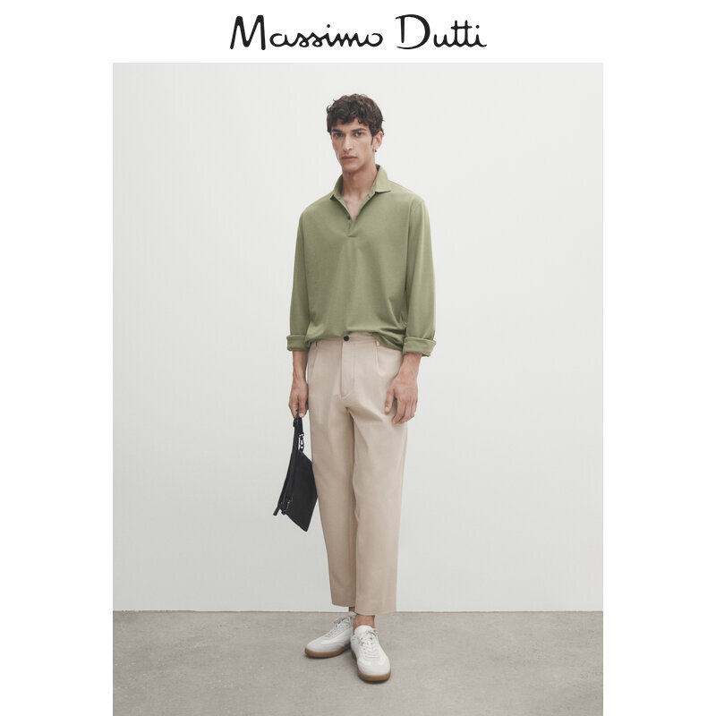 Discount season Massimo Dutti men's clothing 2023 new minimalist textured pure cotton long sleeves POLO shirt 00713288530-Taobao