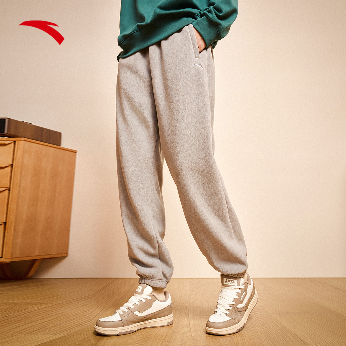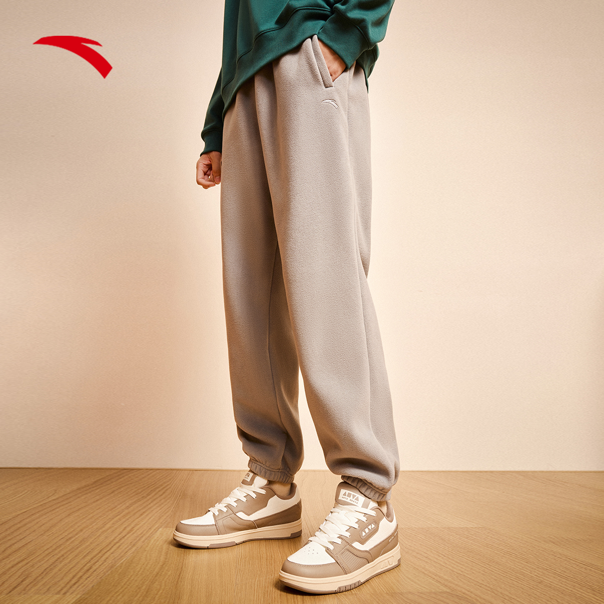 Anta rocking grain suede trousers -- male knit plus suede pants winter new thickened warm loose restrained foot sports pants-Taobao