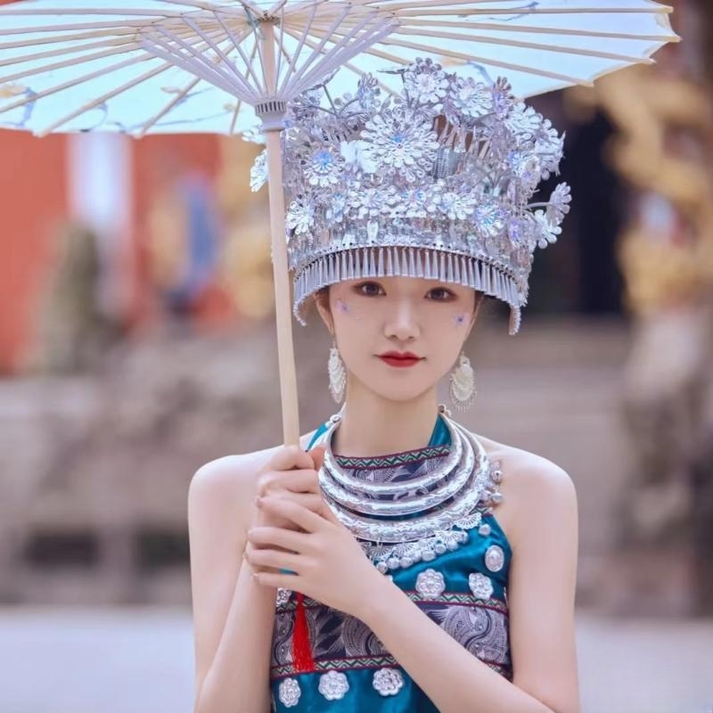 New Miao heads adorned with Aou heads adorned with Miao silver hat Guizhou minority headwear Miao ethnic silver ornaments-Taobao