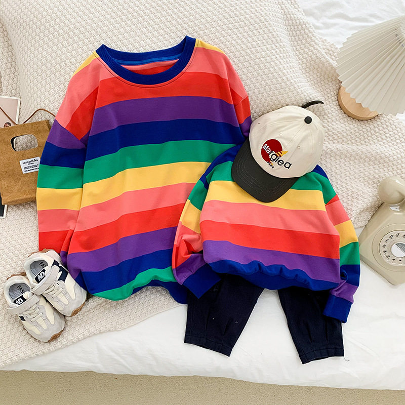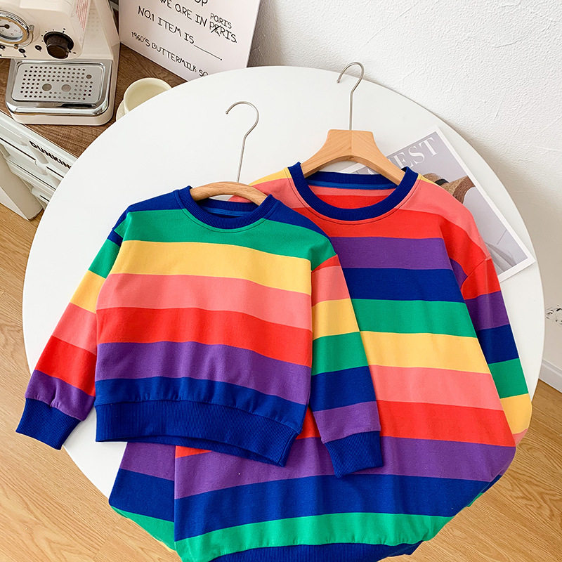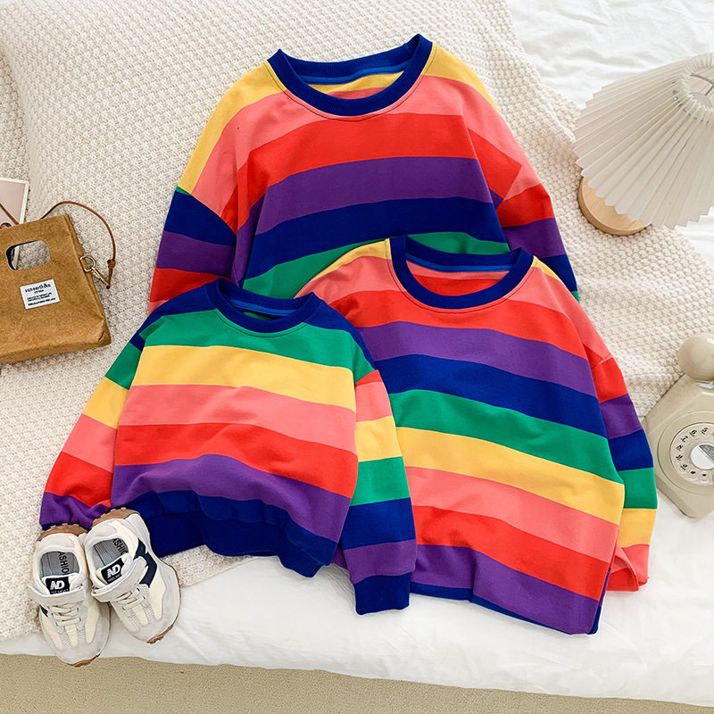 Rainbow pro-zie family of three-mouth Four-mouth Family dress School Activities Mother woman Long sleeve sweatshirt T-shirt-Taobao