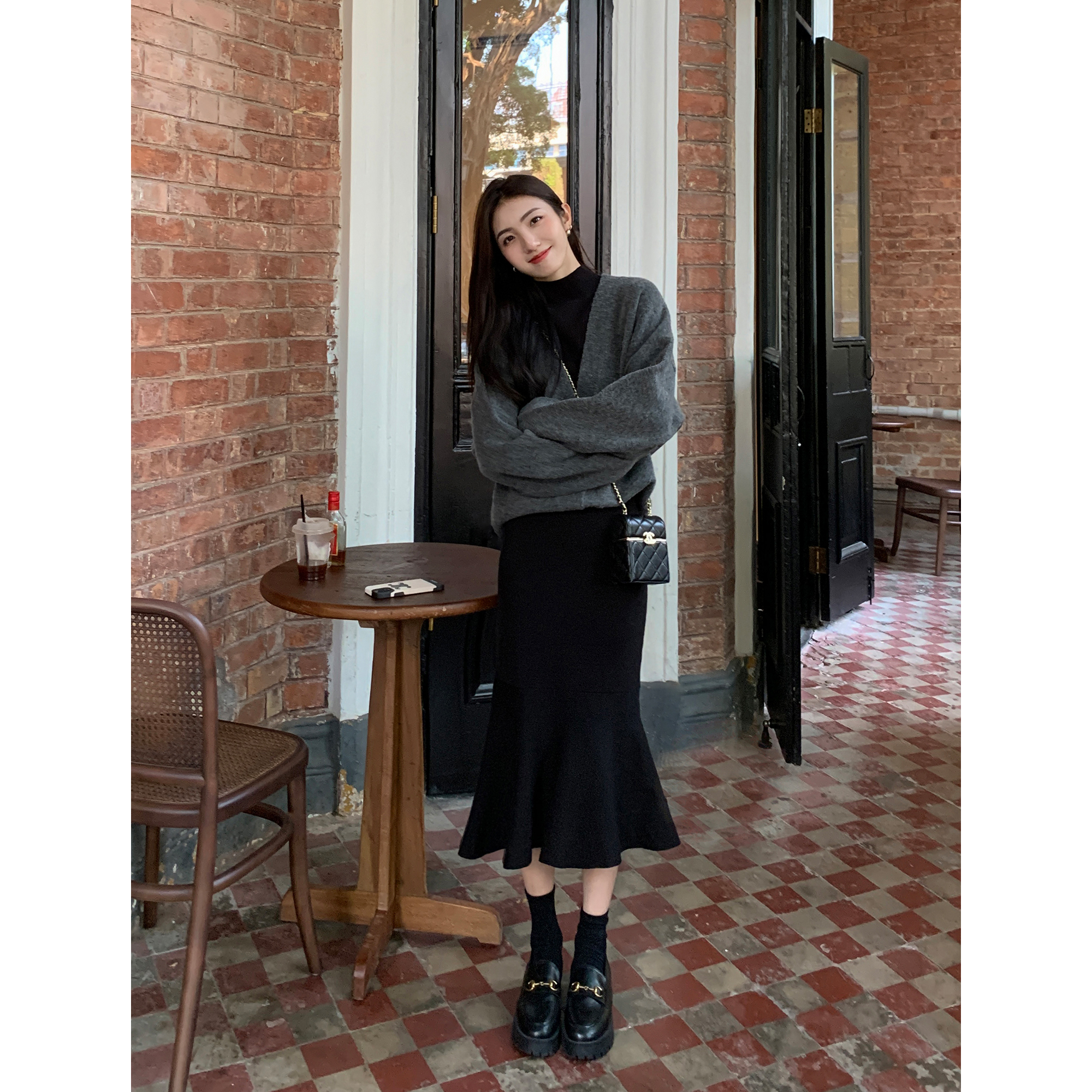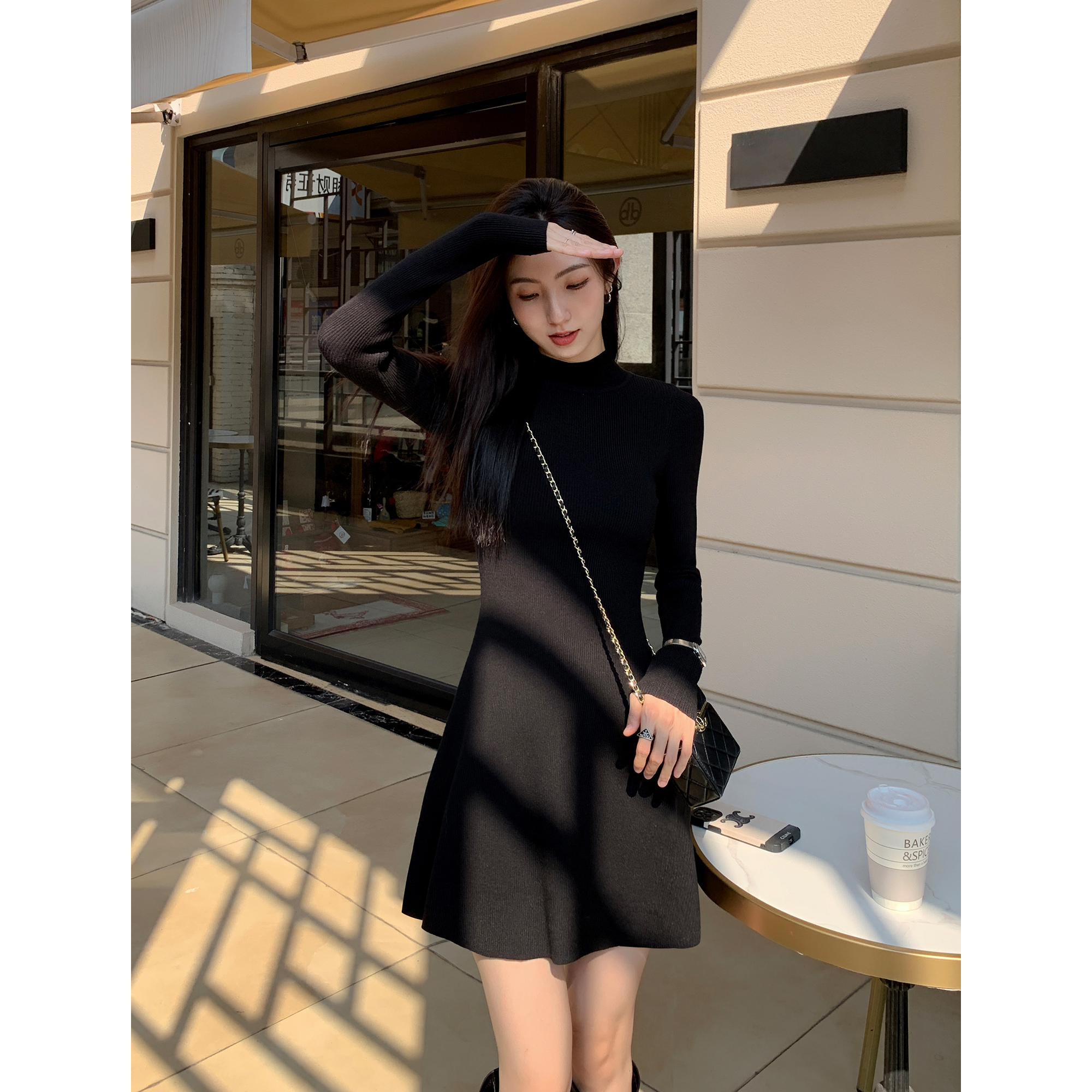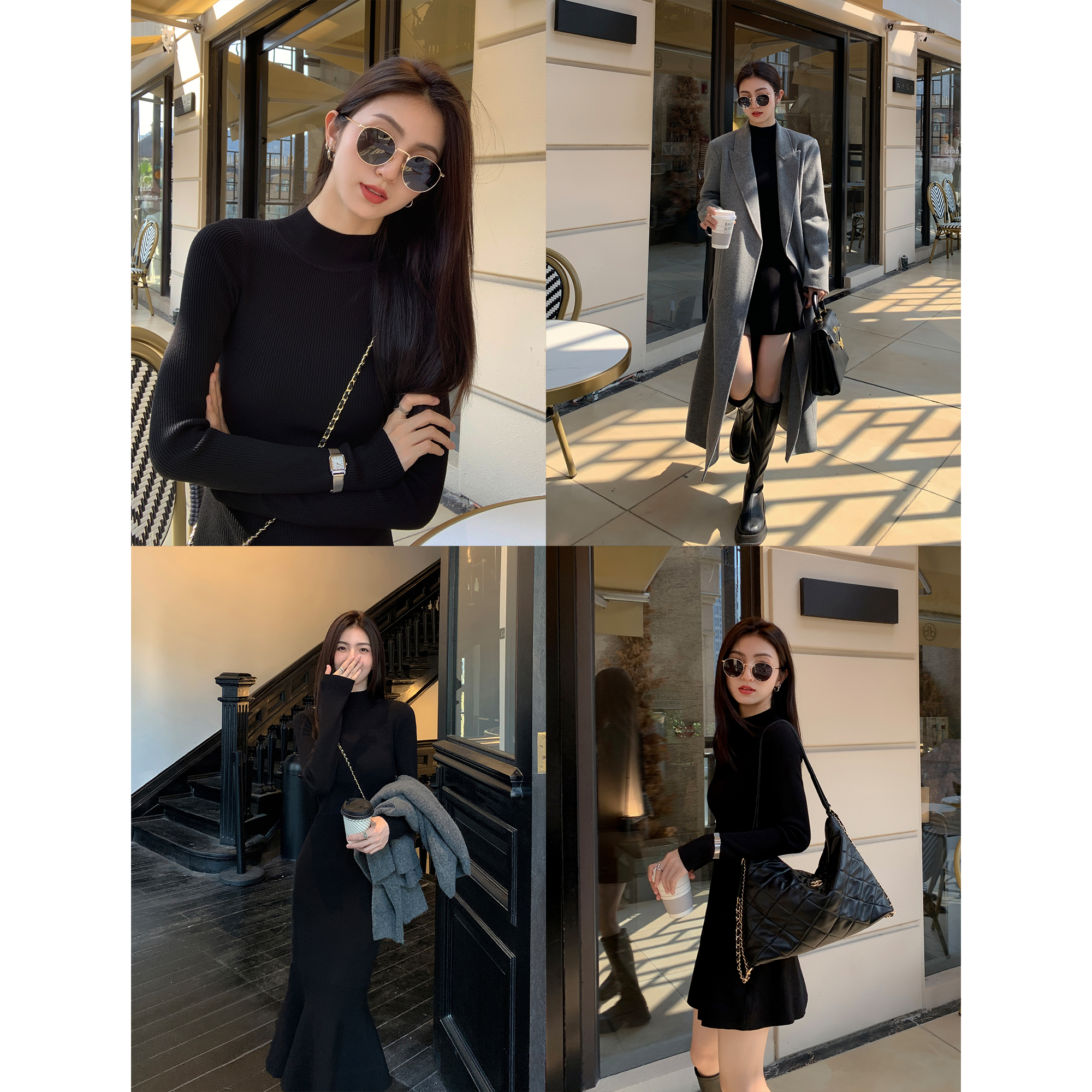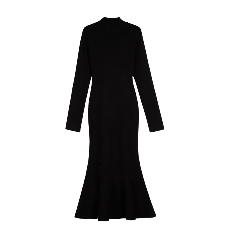 MULVAN knit dress dress woman 2023 autumn winter temperamental fish tail skirt half high collar with slim skirt length money-Taobao