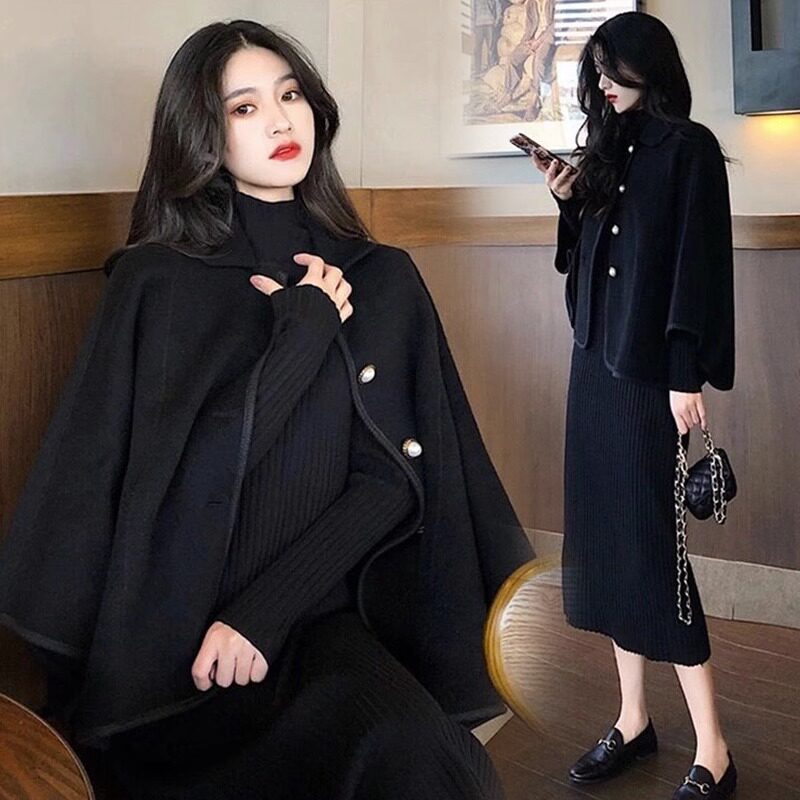 The Jing Ki Pregnant Woman Suit Autumn Clothing Trendy Knit Dress 100 Hitch Cape With Two Sets Of Foreign Air Long Skirt-Taobao