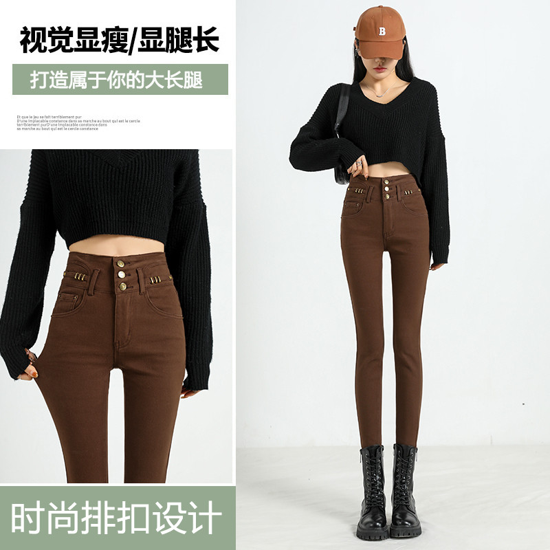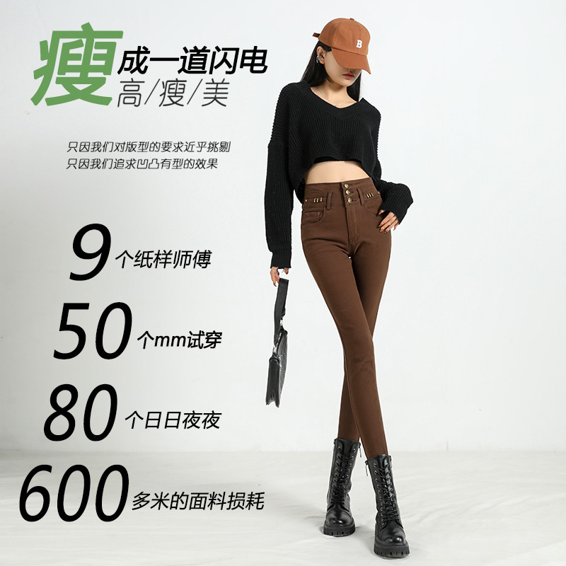 Curry small feet jeans women 2023 fall new high waist elastic body to be slim fit outside wearing pencil pants-Taobao