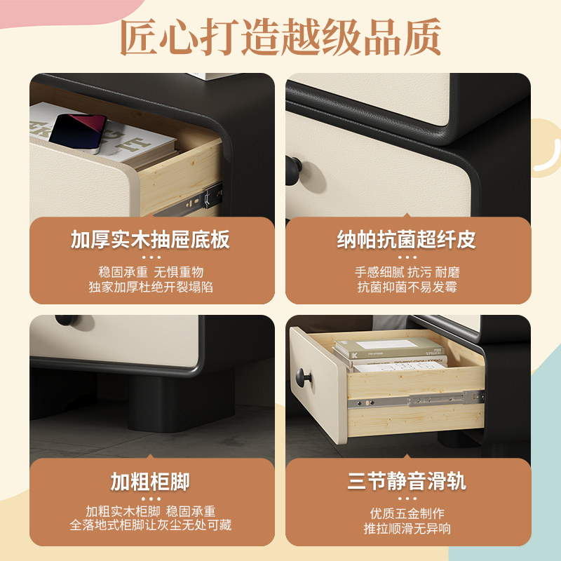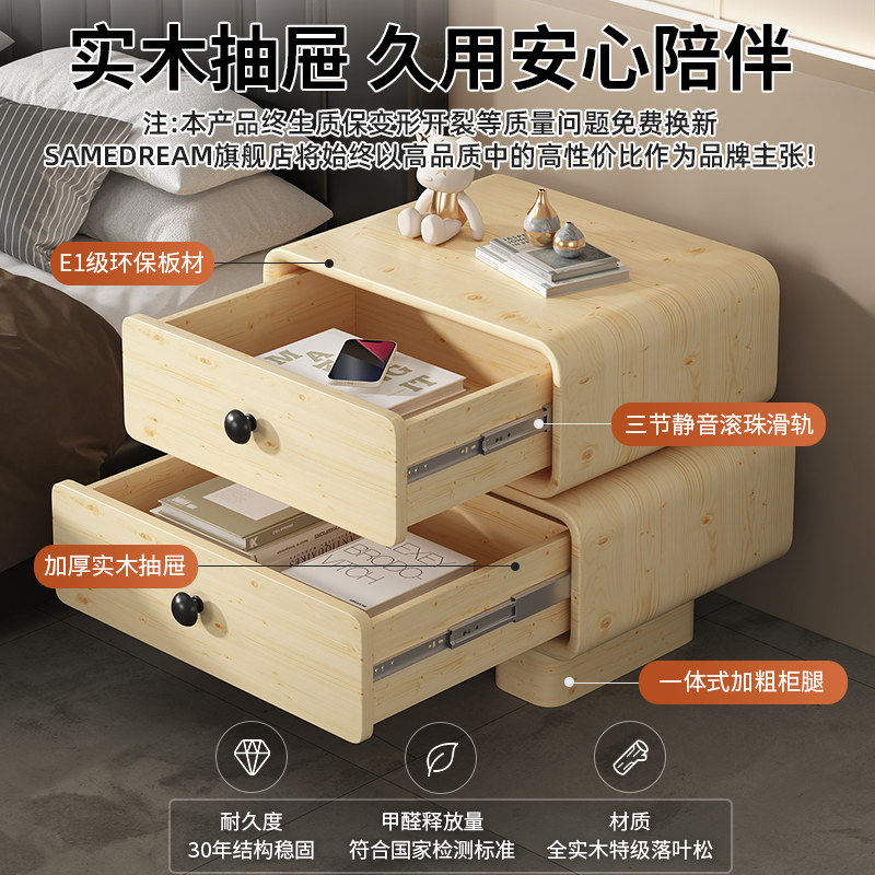Free installation of cream wind bed head cabinet minimalist modern small cortical headboard storage cabinet solid wood bedroom bedside cabinet-Taobao