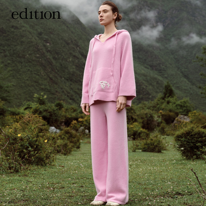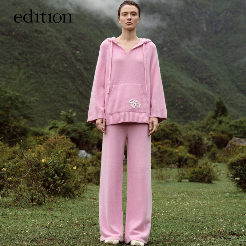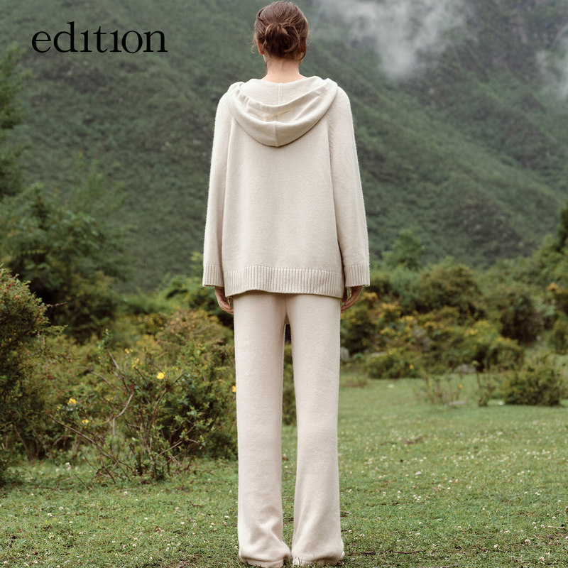 E Light Life Series edition2023 Autumn New Casual Broadleg Cashmere Wool Weaselpants EBC3PAT039 -Taobao