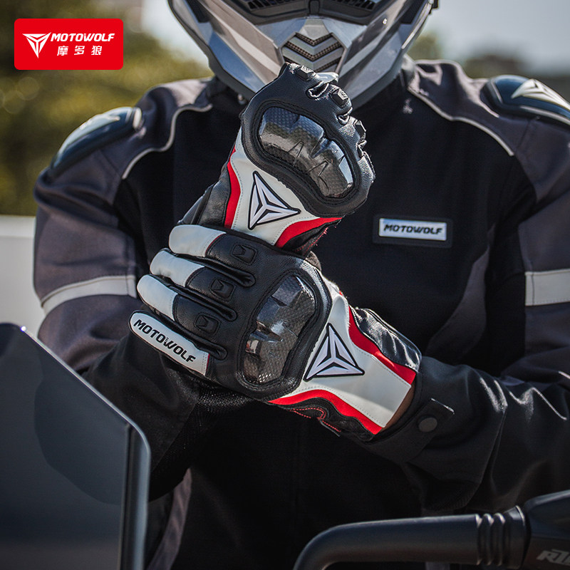 Morado Wolf Motorcycle Gloves Autumn Winter Windproof Warm Locomotive Riding Carbon Fiber Anti-Fall Waterproof True Goat Leather Man-Taobao