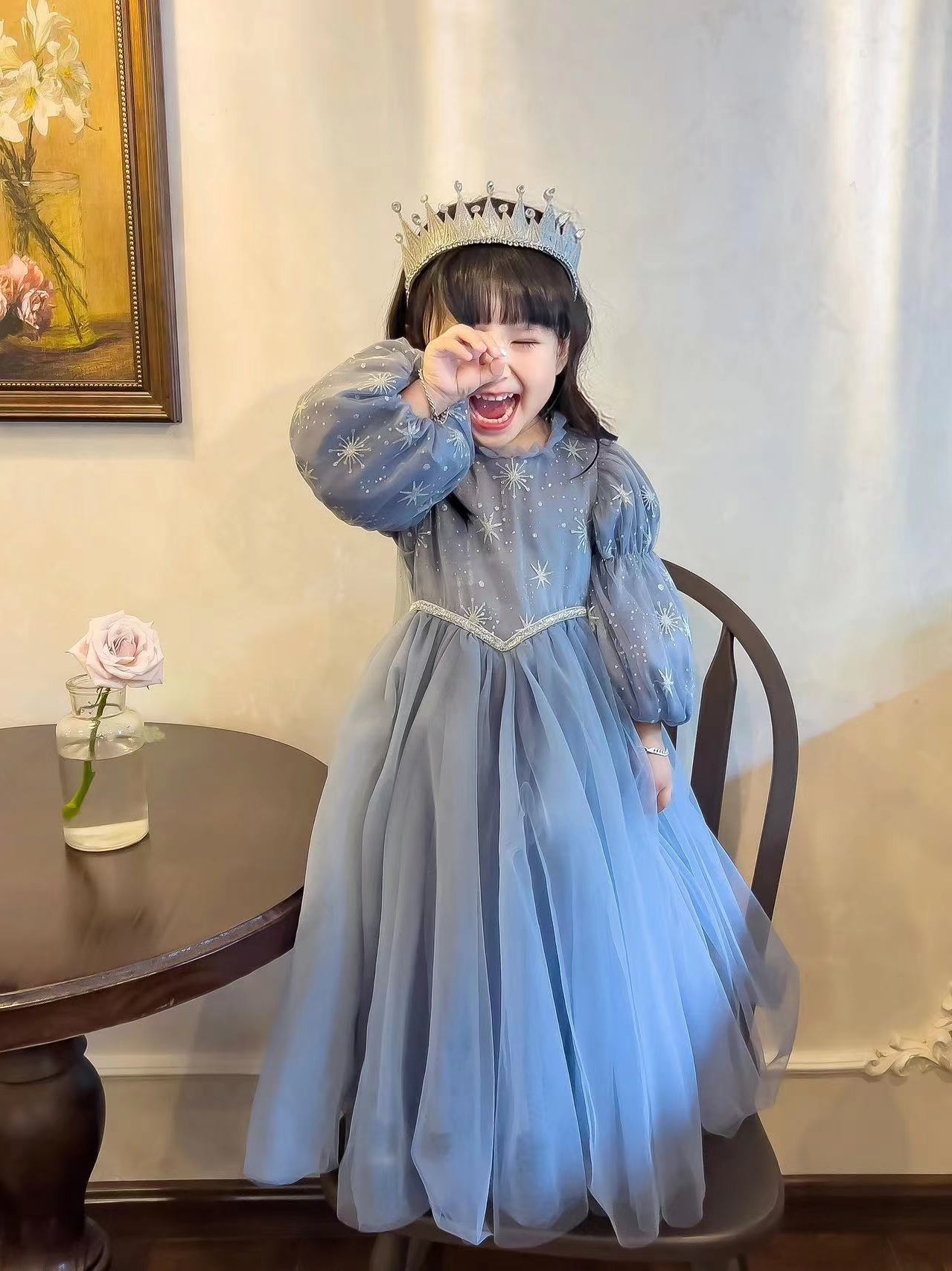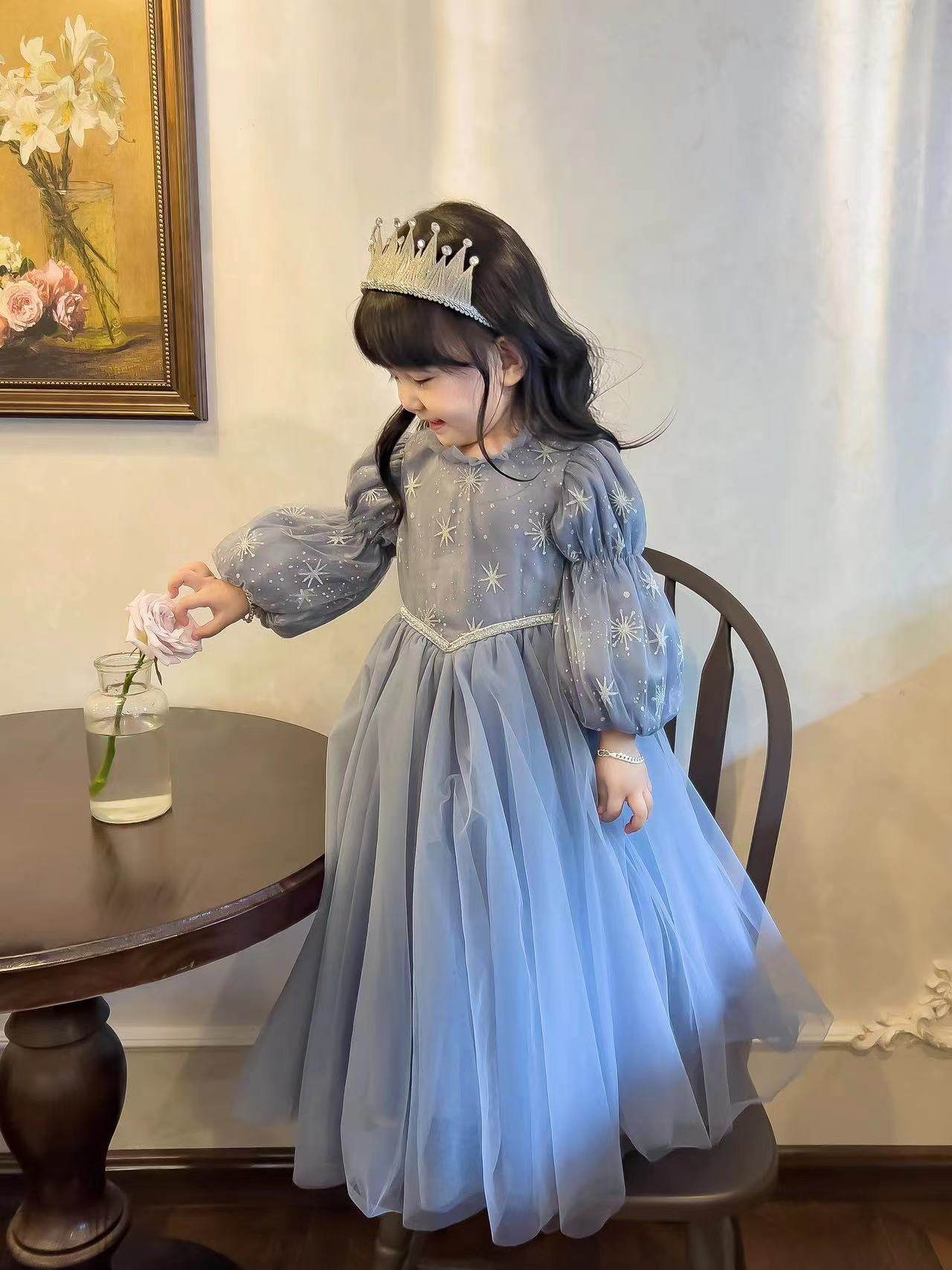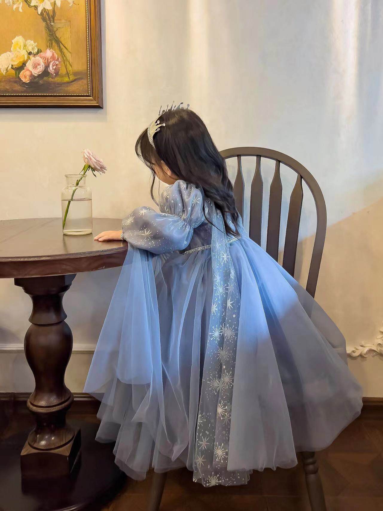 Autumn Winter Aesha Esa Snow Snow Princess Girls Long sleeves Dress Dress Girl Dress Little Girl Birthday Dress the Beaty dress-Taobao