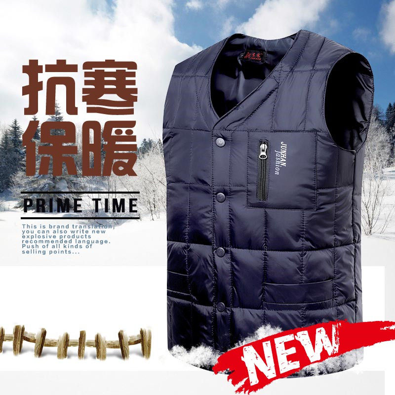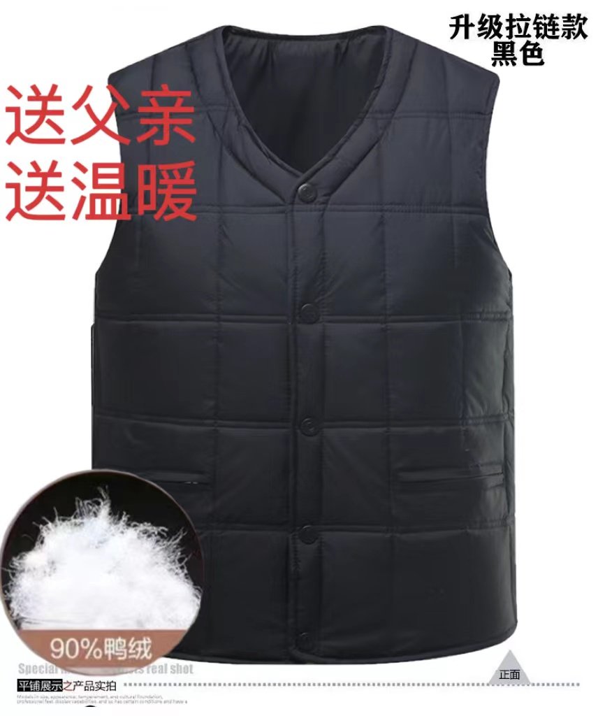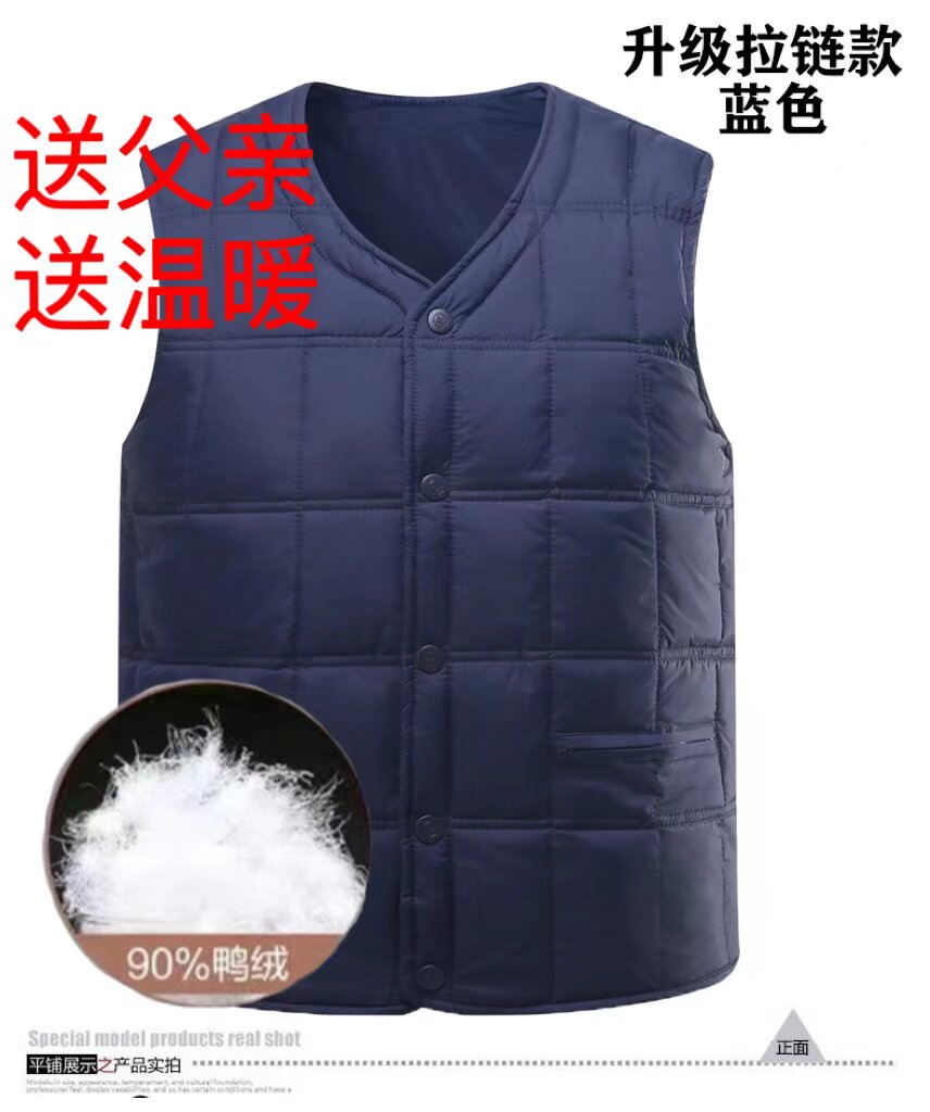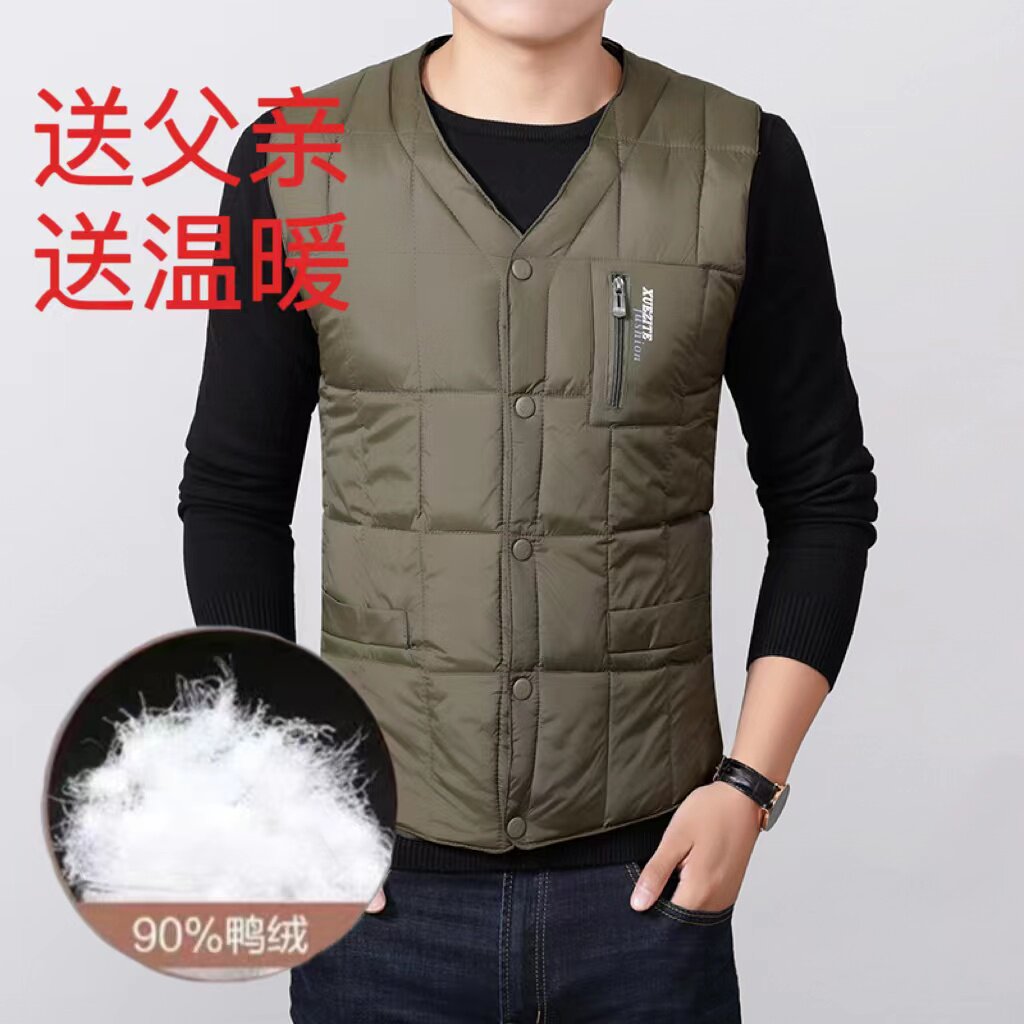 Upscale men's down waistcoat thickened autumn and winter middle aged down vest waistcoat Shoulder Warm Liner Dad Manclip-Taobao