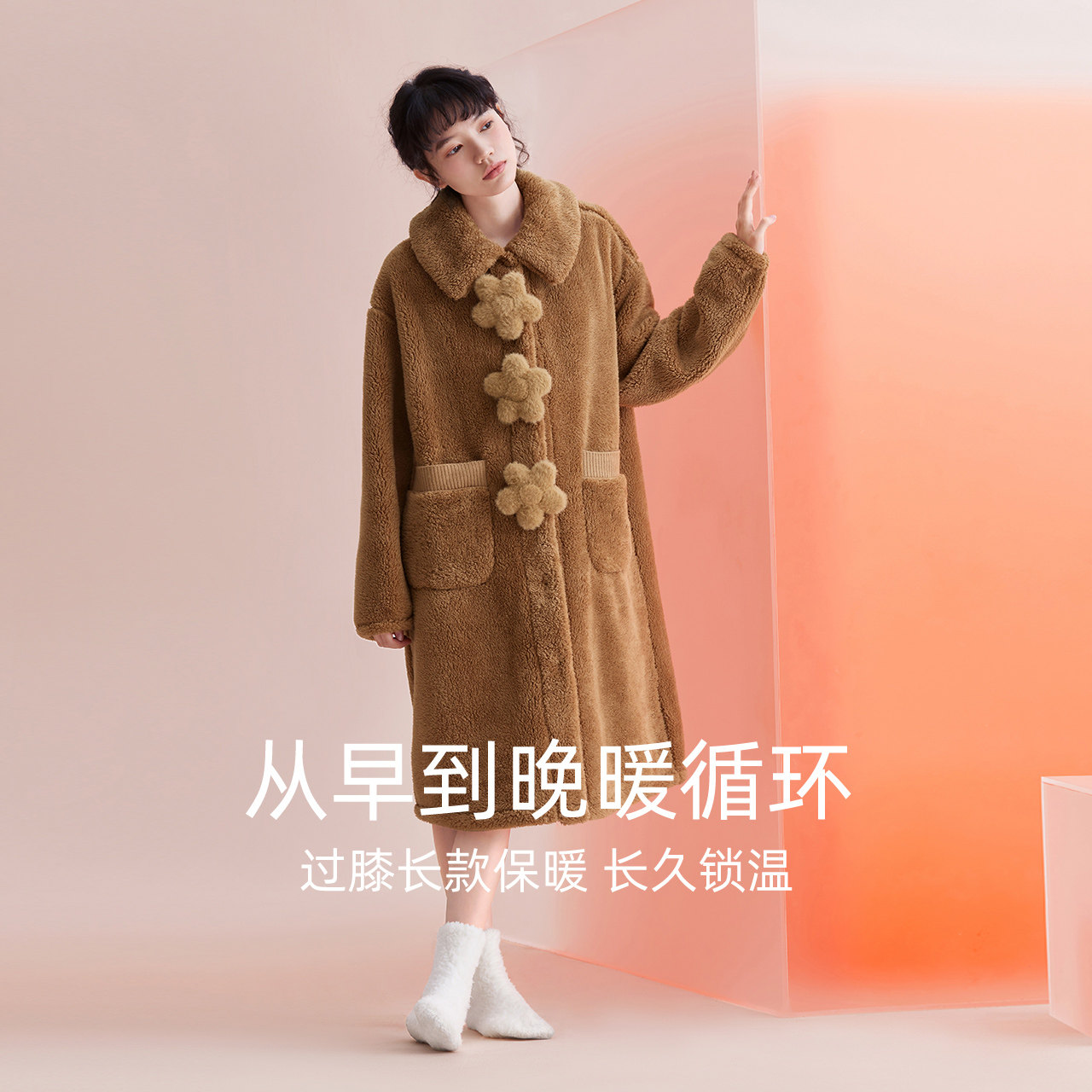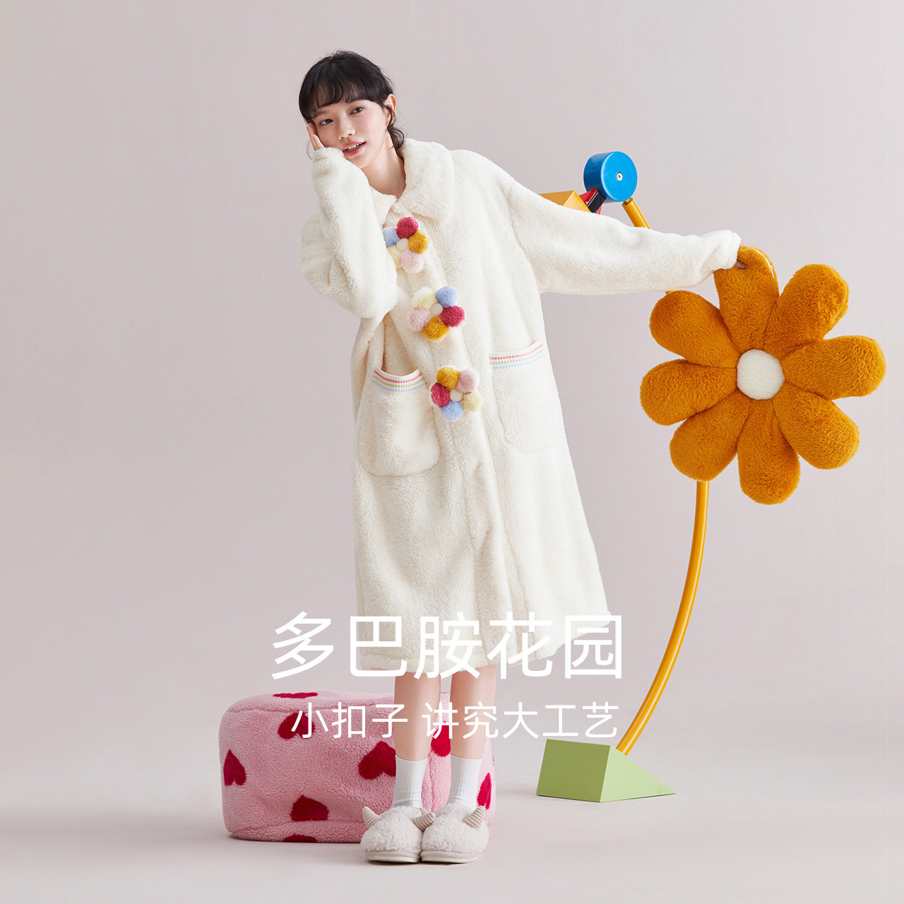 Red Bean At-home Sleeping Robe Female Coral Suede Cute Pyjamas Can Outwear Autumn And Winter Warm Home Clothing Bathrobe Sleeping Skirt Winter-Taobao
