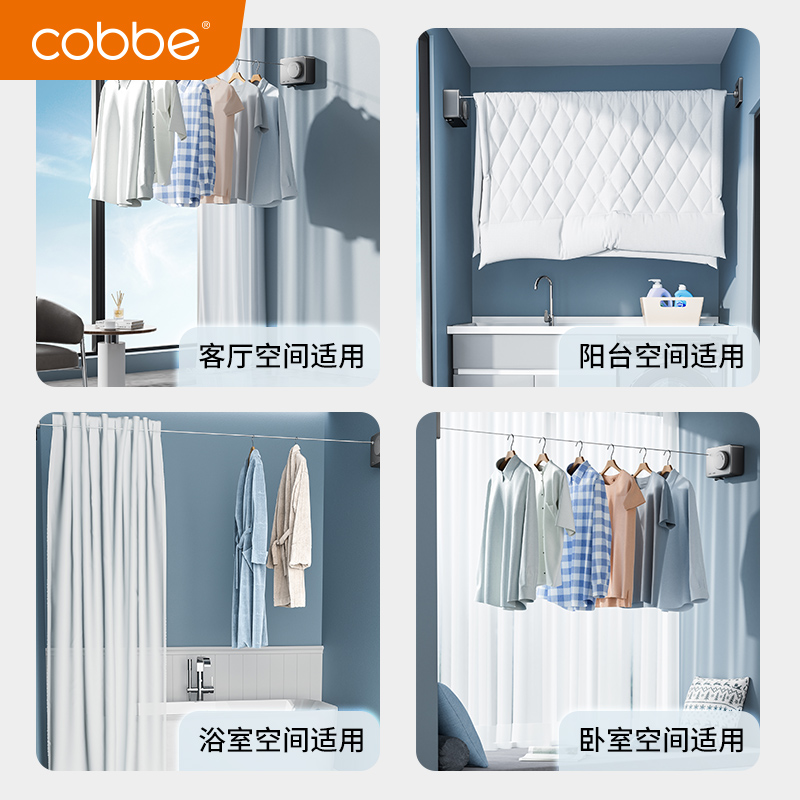 Cabbé Invisible Systolic clothesline Indoor free of punch toilet clotheshorse Laundry God Instrumental Balcony Steel Wire Rope Hanger-Taobao