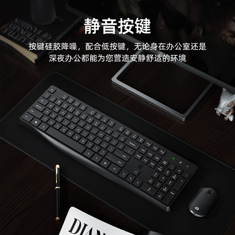 HP Keyboard Mouse Key Mouse Suit Wired Human Ergonomics Desktop Computer Business Silent Office Generic Film-Taobao