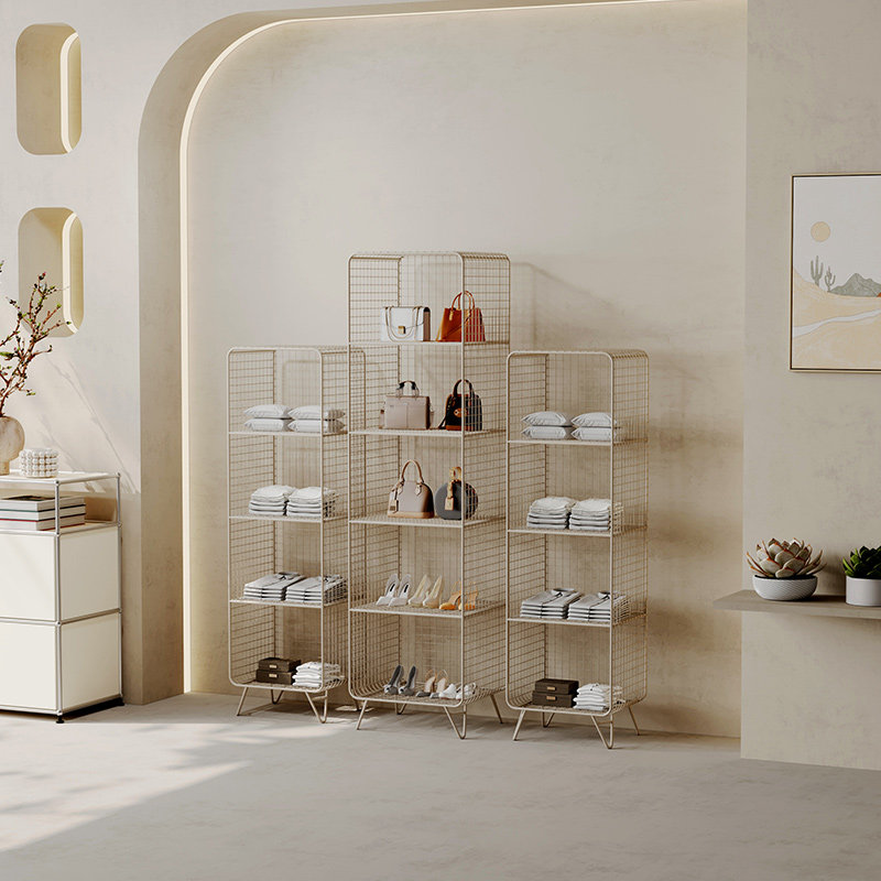 Cream Wind Clothing Shop Shoe Rack Mesh Red Iron Art Bag Package Multilayer Show Shelf Simple Home Floor Book Containing Cabinet-Taobao