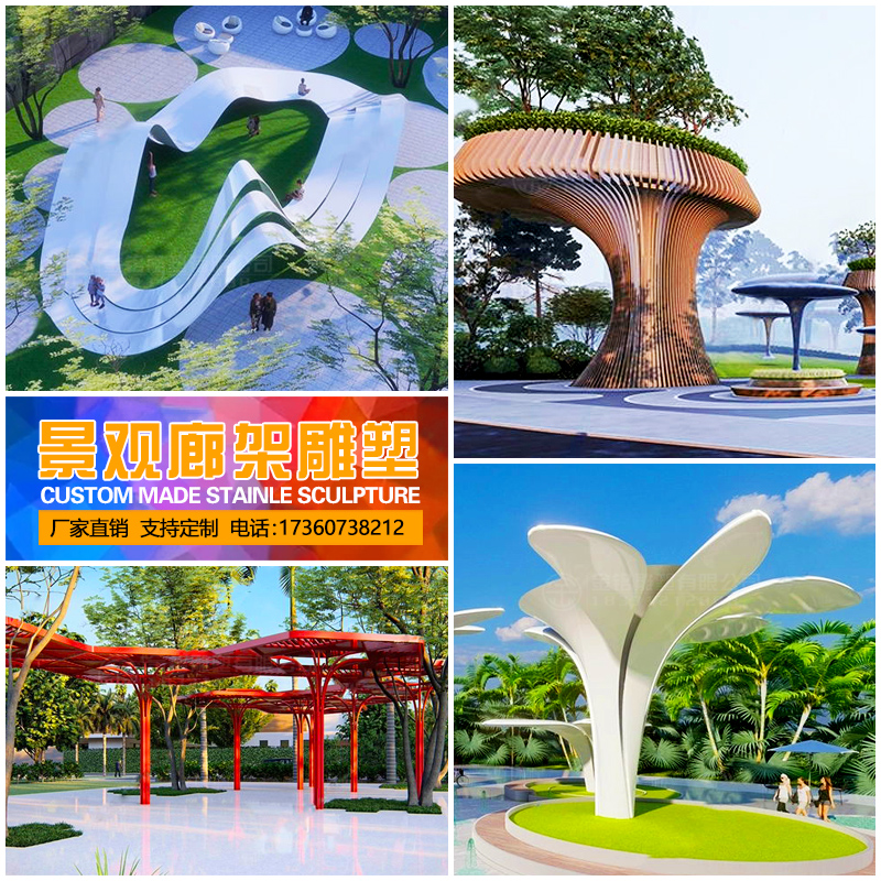 Outdoor Large Stainless Steel Profiled Cool Pavilion Stand Sculpture Custom Manufacturer Metal Steel Structure Promenade Garden Forest Landscape-Taobao