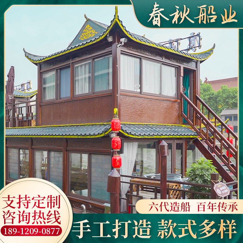 Wooden boat painting Boat Boat Large Scenic Area Double Imitation Ancient Conference Reception House Water Catering Electric Sightseeing Boat-Taobao
