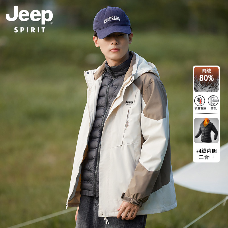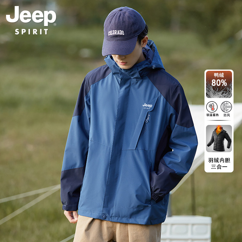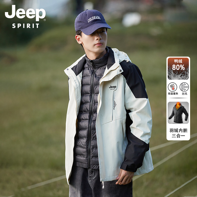 JEEP Mountain Department Down Clothing Men's Autumn Winter Warm Windproof Jacket Jacket New Three-in-one Mountaineering Suit Men's Clothing-Taobao