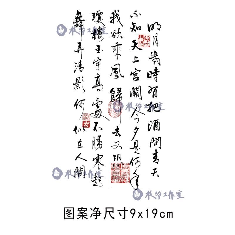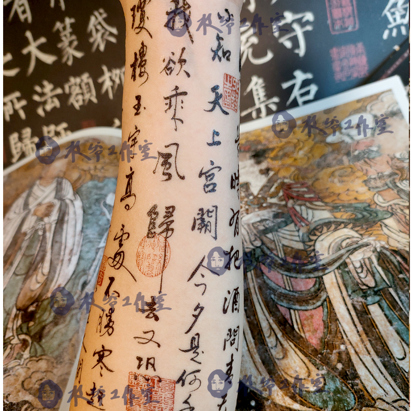 Water Tune Song Head Su Shi's tattoo sticker with ancient wind poetry Chinese Wind Calligraphy Flower Arm with Three-Taobao