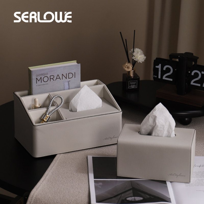 Shenglo multifunction remote control containing paper towel box Living room modern light extravagant upscale leather grey pumping paper containing box-Taobao
