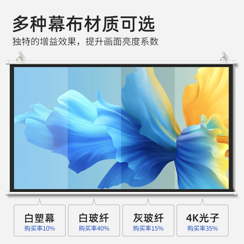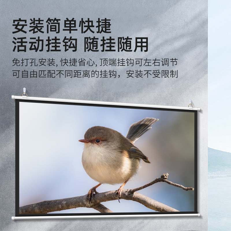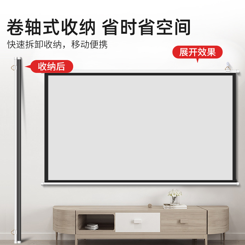 Toshiwing Home Projector Curtain Cloth Anti-Light Projection Cloth Curtain Cloth Free Of Punch Wall Hanging 84 Inch 100 Inch 120 Inch Mobile Portable Containing Living Room Bedroom Office Simple 4K High-definition Projection Curtain-Taob