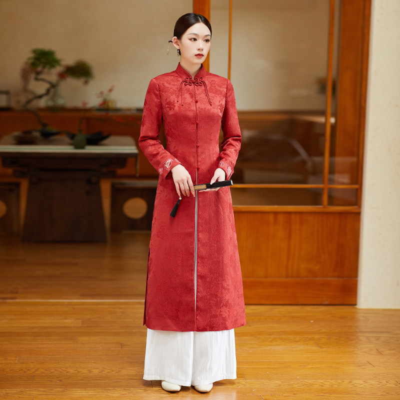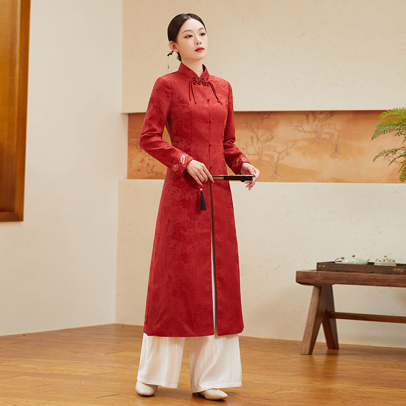 Tang loaded with Chinese wind women's clothing Handmaid red blouses woman Tang Costume Zen's new Chinese Buddhist system Qipao Zen Fu Tea Fu Autumn-Taobao