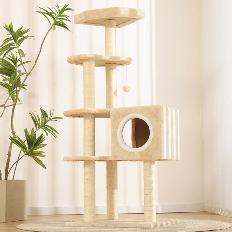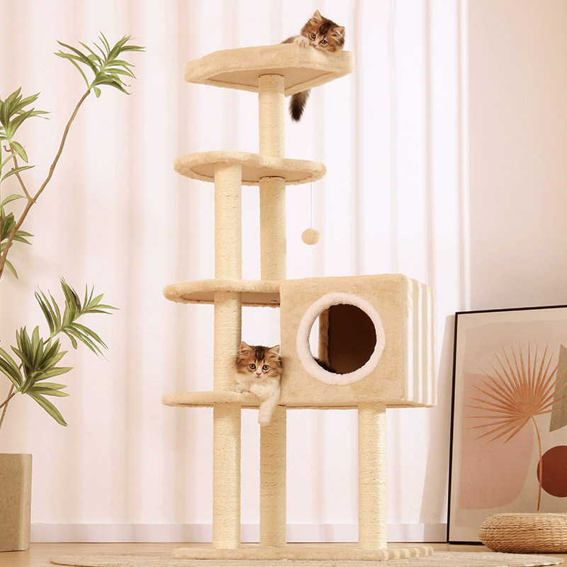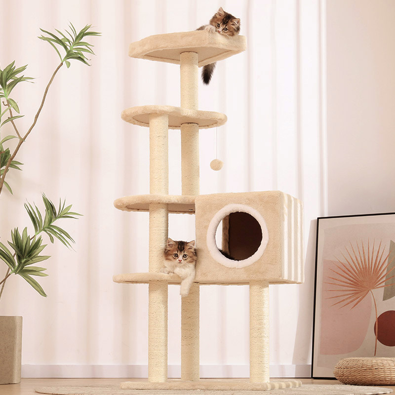 (Hot Pins) Multifunction European-style Fancy Cat Climbing (Five Floors Platform Wear Resistant And Scratchproof) Multilayer Luxury Large Cat Cowl Cat Climbing Frame Practical Midsize Feline Cat Climbing Frame Three Layers Cat And Cat Climbing Rack Double Sleeve