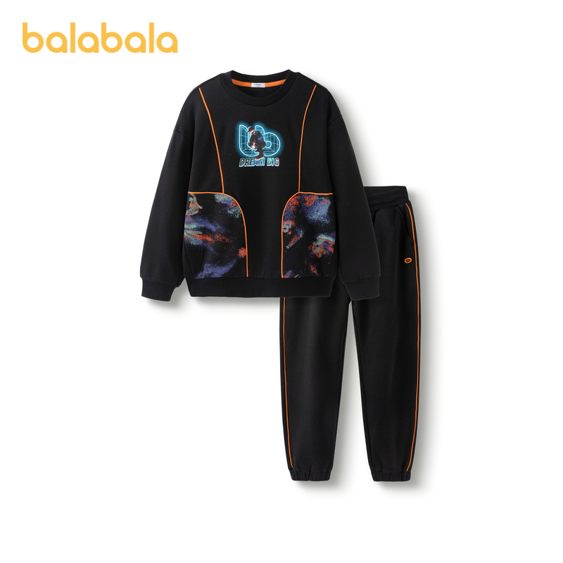 Bala Bala Boy Clothing Boy Suit Autumn Winter Middle Child Children Round Collar Casual Warm Printed Plus Suede Two Sets Tide-Taobao