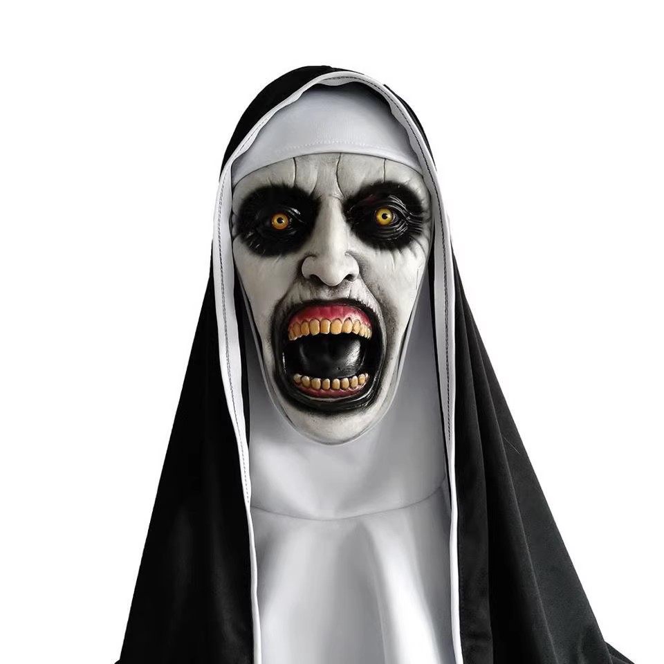 Terror Nun Mask for Halloween Ghost House Secret Room Script Killing Ncc Dress Costume Props Scary Ghost Face Cos Hood man-Taobao