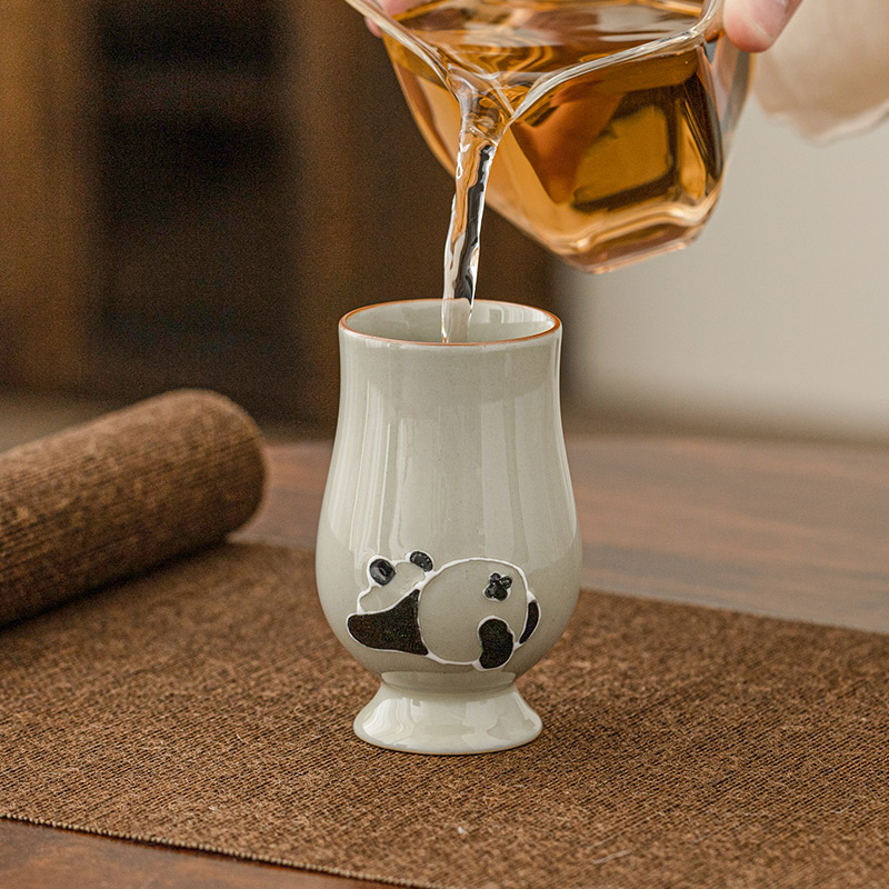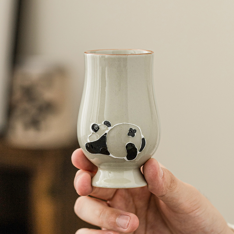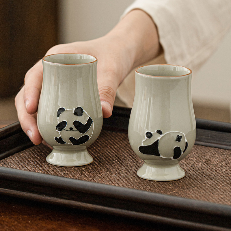 Creamy straw wood grey hand-painted panda smelling cup tea cup master cup ceramic utilita tea with single cup of tea drinking cup-Taobao