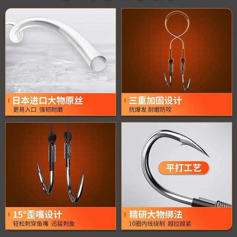Import Big Things Sub-Wire Double Hook Crooked Mouth Reinforced Version Silver Carp Hook with barb Isnobini tied for finished product-Taobao