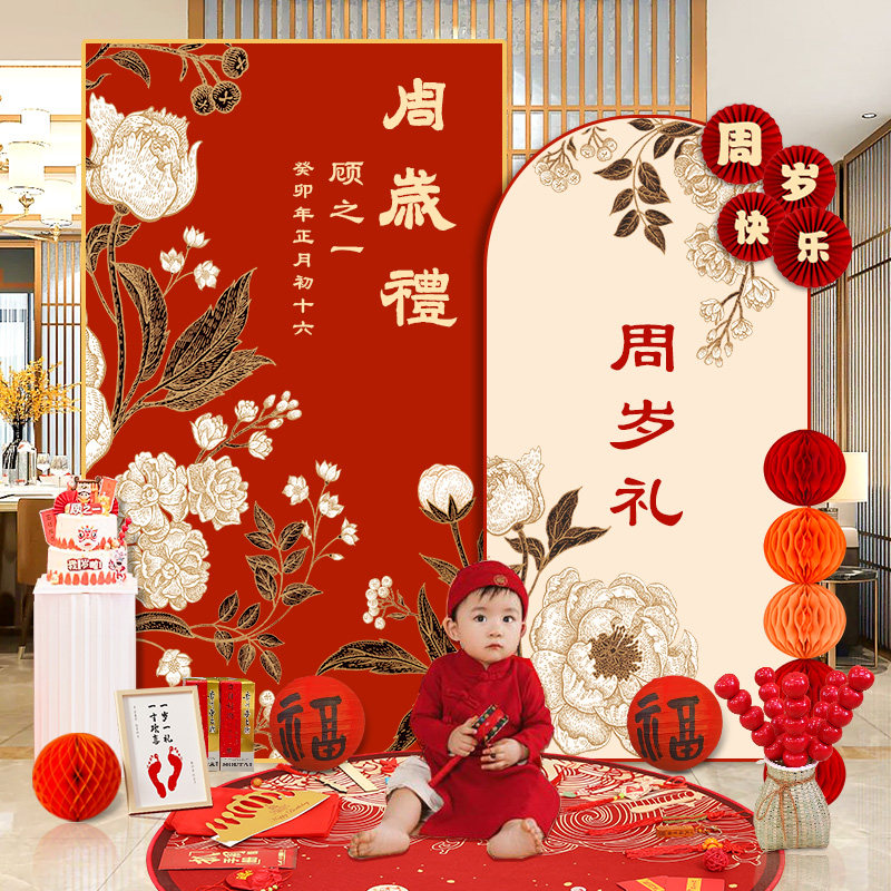 New Chinese baby Birthday Arrangements for birthday Birthday Arrangements Scene Decoration Nets Red Male Girls Grab Zhou Courtesy Background Wall KT Board-Taobao