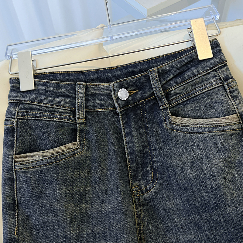 Cement Grey Smoke Pipe Jeans Woman 2023 new autumn cash This year's popular pants small sub 90% straight drum pants-Taobao