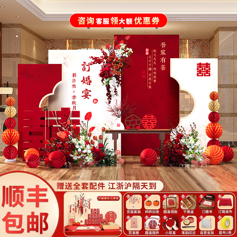 Book Wedding Banquet Arrangement Decoration Full Set Background Board Chinese Background Wall Kt Board Wedding back to Gate Festive Character Swing supplies-Taobao