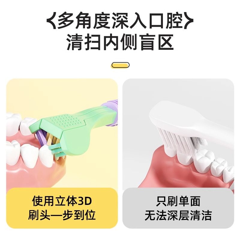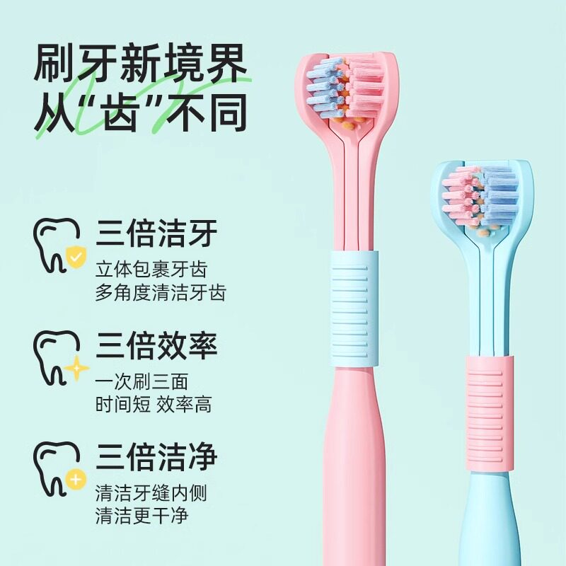360 stereo no dead angle 3d toothbrush 3 faces clean teeth family clothes adult soft hair three-head u-shaped tooth slit three sides-Taobao