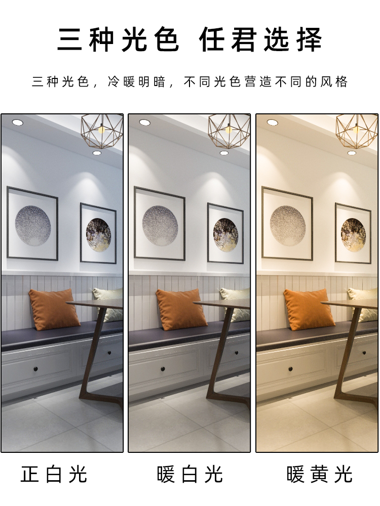 (white light) silver edge suitable for open pore 7-9CM inner light surface diameter 10 4CM (warm white light) silver edge suitable for open pore 7-9CM inner light surface diameter 10 4CM (triple color light)