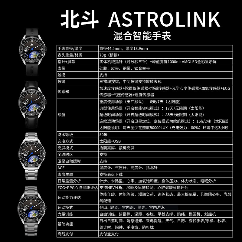 Beidou Watch TA600 Astrolink Hybrid Intelligent Movement ECG Electrocardiogram Blood Oxygen Business Solar Man-Taobao
