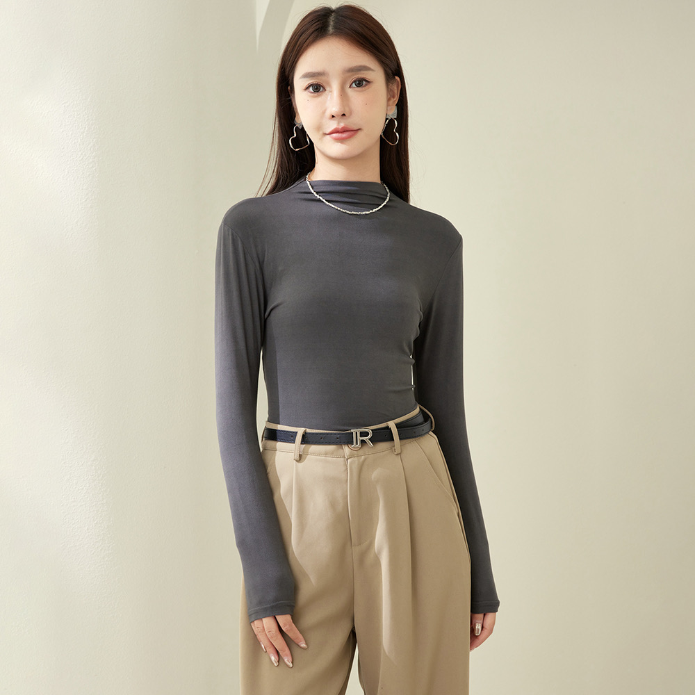 Autumn and winter style half-height collar double face grinding undershirt woman with warm inner lap long sleeve face mask T-shirt-Taobao