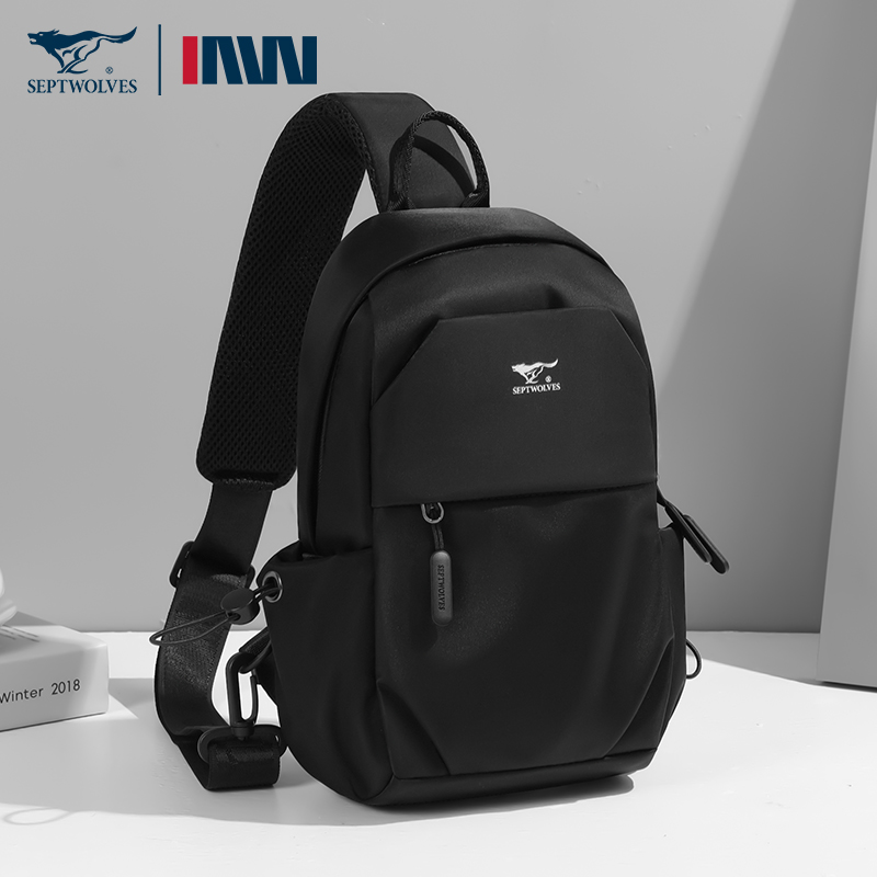 Seven wolves Korean version of minimalist satchel satchel sports casual men's chest bag riding locomotive single shoulder bag trendy male backpack-Taobao