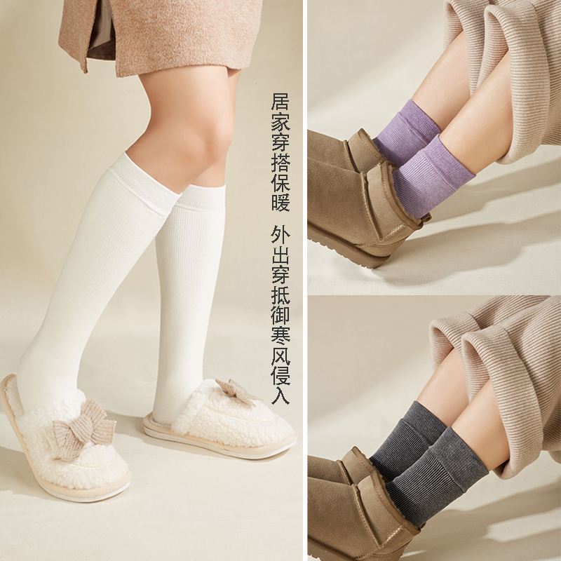 Winter ladies super thick midbarrel plus suede sleep thickening long cotton socks men's moon socks warm and snowy giant calf socks-Taobao