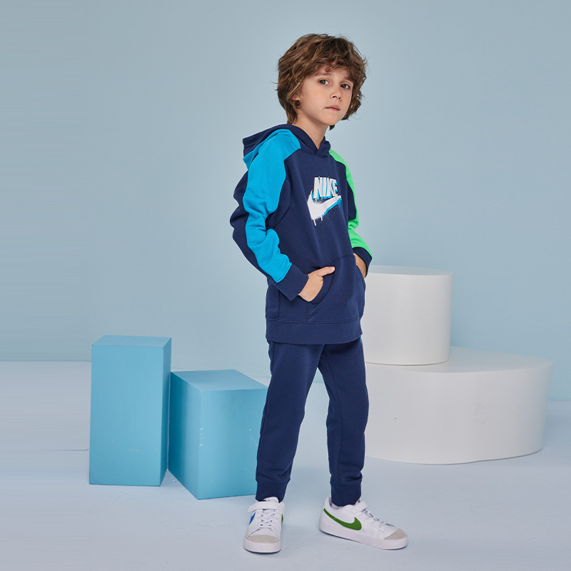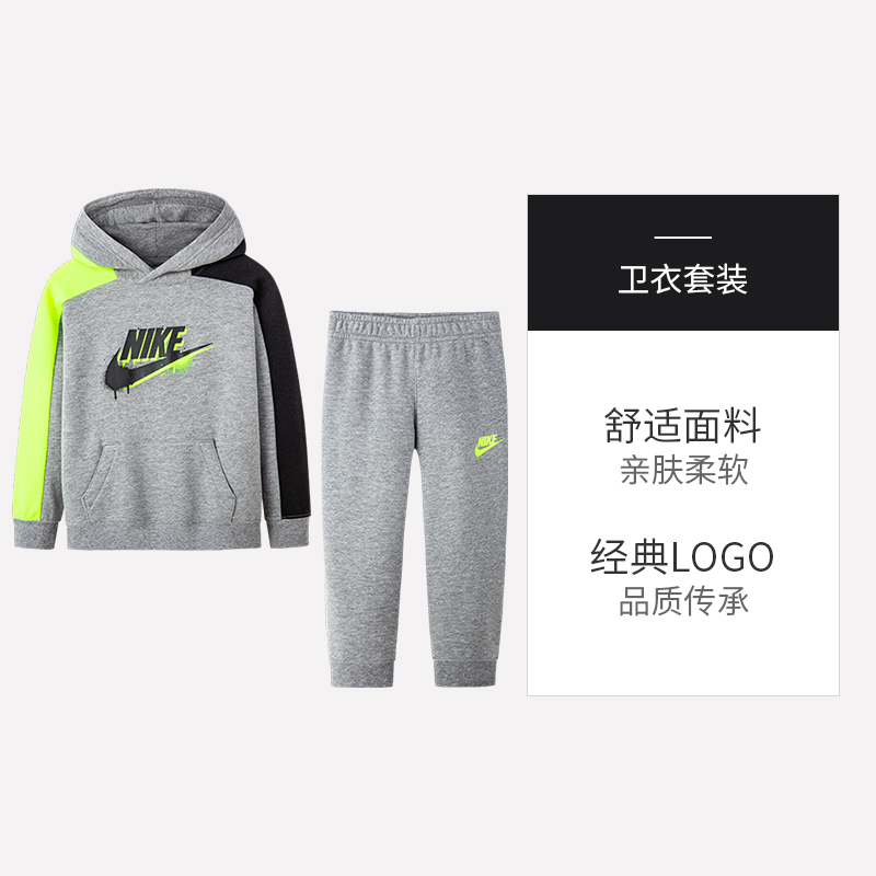 (Self-Employed) Nike Nike Children's Clothing Autumn Winter New Products Plus Suede Sports Suit Children Fashion and hats Two sets Tide-Taobao