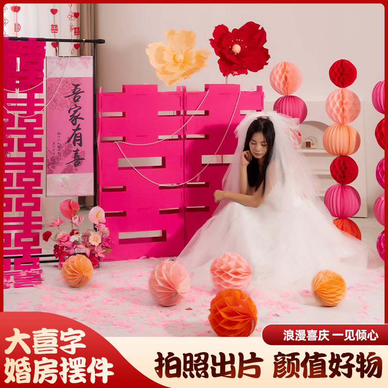 Entrance Big Joy Character Three-dimensional Landing of the Xi Alphabet Wedding House Arrangement Kt Board Wedding Decoration Pendulum Wedding Rural Yard-Taobao