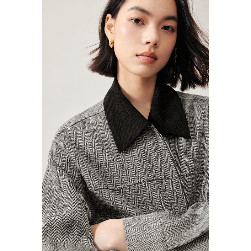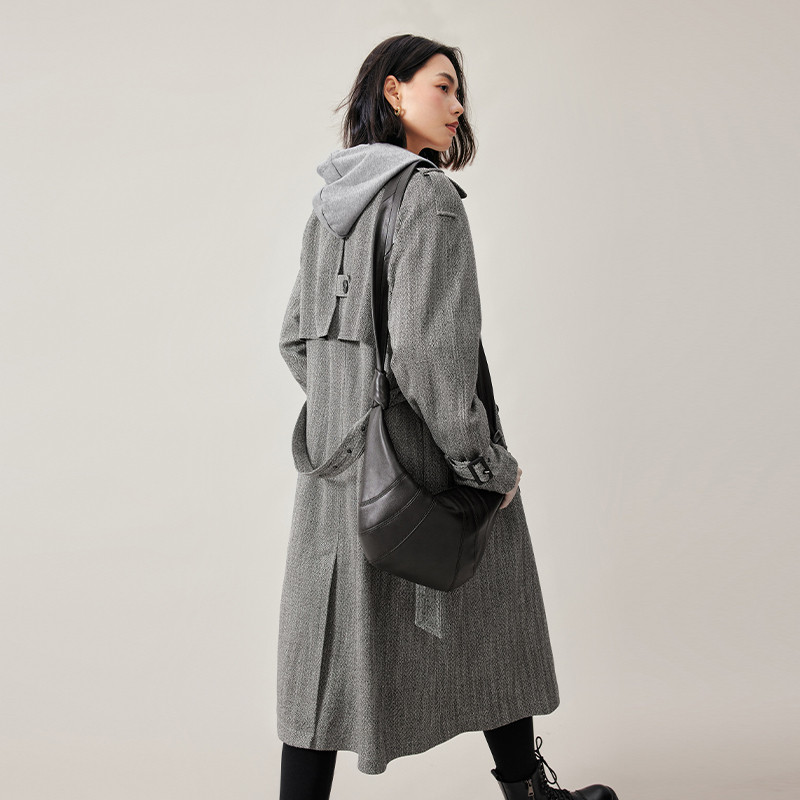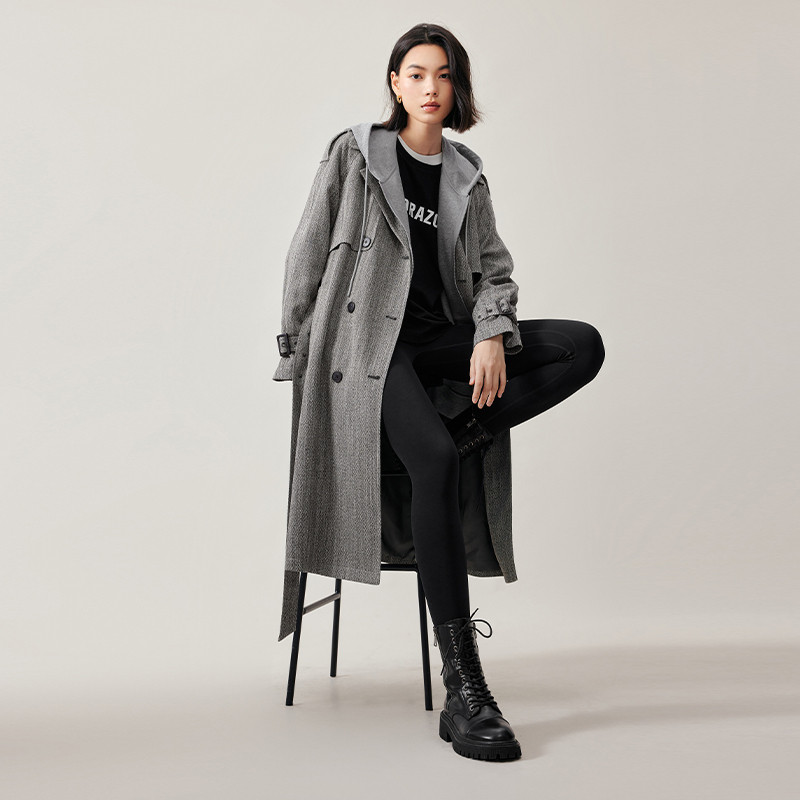 Iveli herringbone tattooed double-row buckle belt long style wind dress woman 2023 autumn clothing advanced senses commuter workplace jacket woman-Taobao