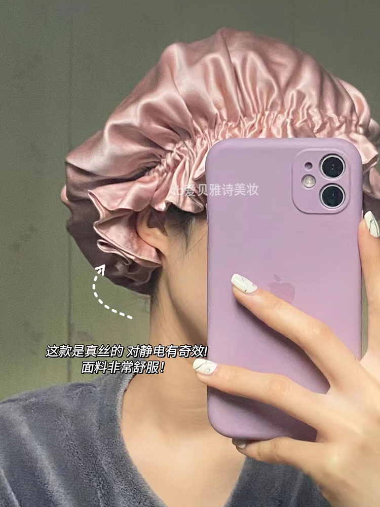 True silk hair care method ~ French style 100% mulberry silk sleeping hat real silk hair hat suction oil woman with maternal moon hair film cap-Taobao
