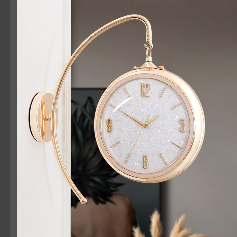 Modern light extravagant minimalist Decorative Watch Creativity Muted bifacial hanging clock Living room Home European Atmospheric Clock Hanging Wall-Taobao