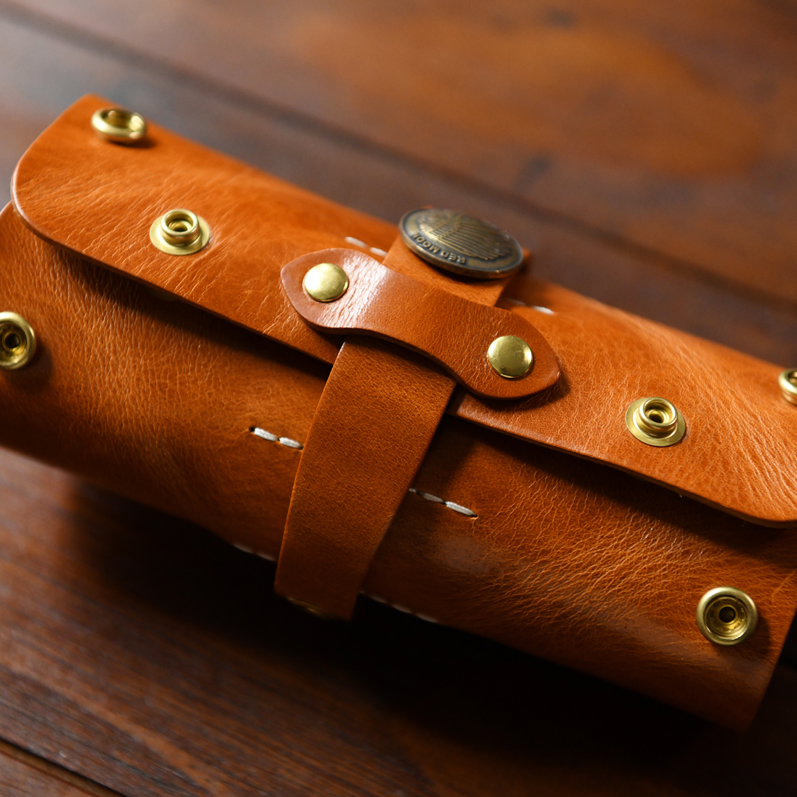 Head Layer Cow Leather High Quality Smoke Bucket Bag Handmade Imported Vegetable Tanned Cow Leather Multifunctional Containing Bag Delicate Containing Box Man-Taobao