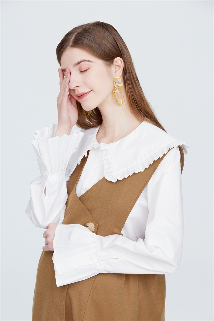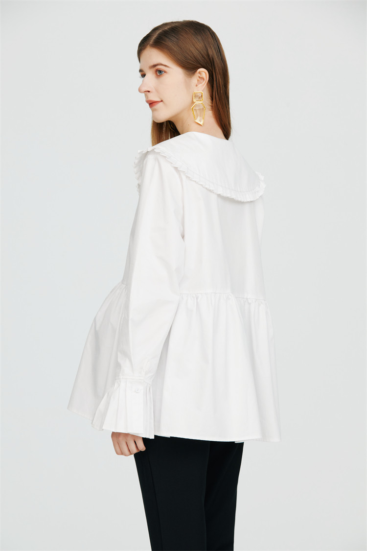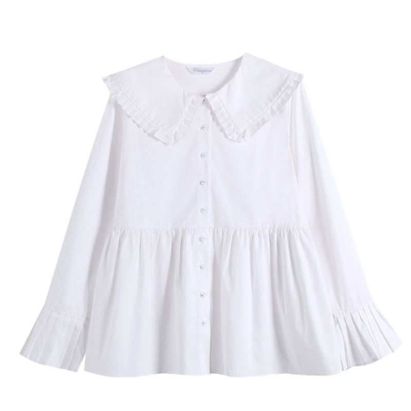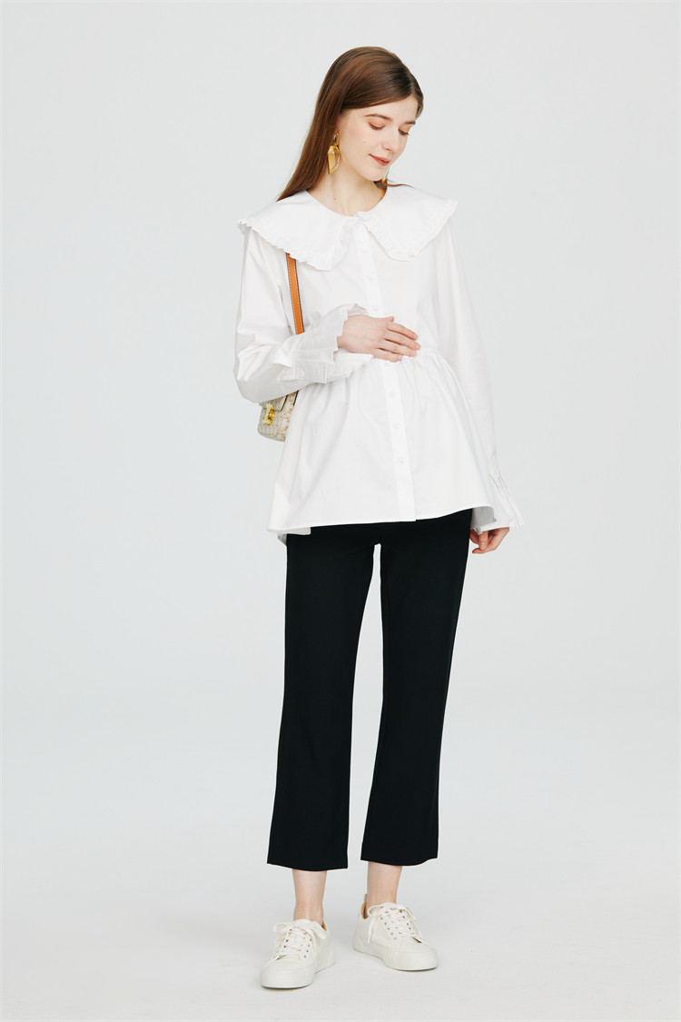 Pregnant woman White Bottomed Shirt Doll Collar Sweet and Korean version Loose Large Code Gestation Woman Dress Spring Clothing Pure Cotton Blouse-Taobao