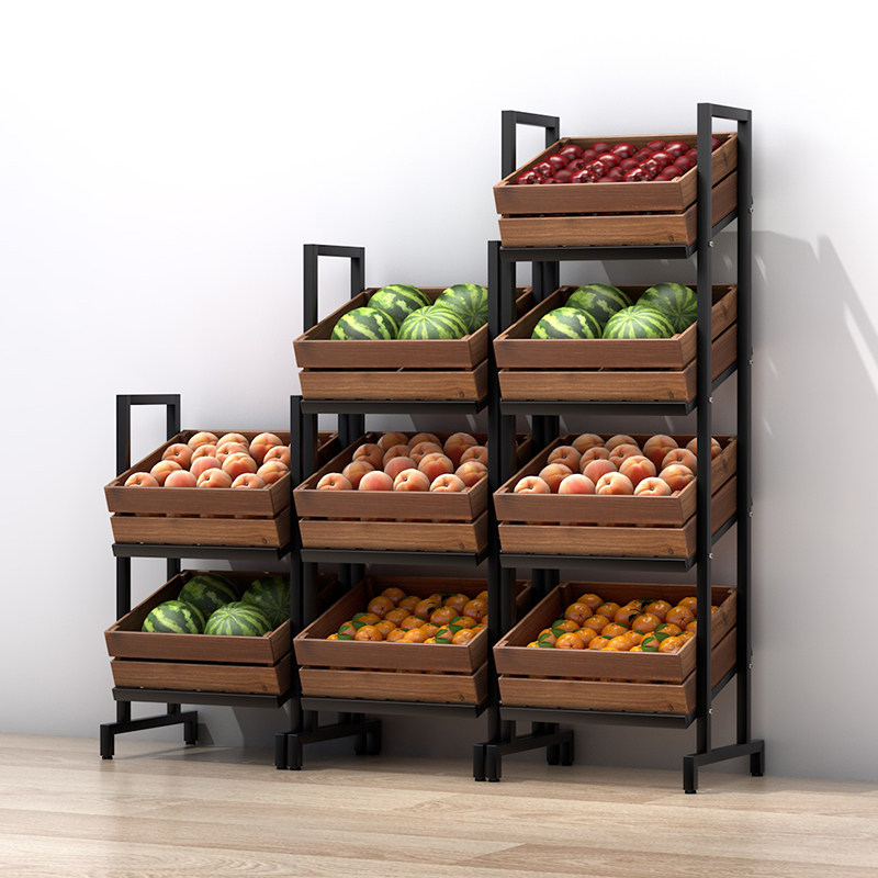 Supermarket Fruit Shelf Home Kitchen Fruits Vegetable Shelving Red Wine Rack Solid Wood Frame Raw fresh multilayer containing display cabinet-Taobao