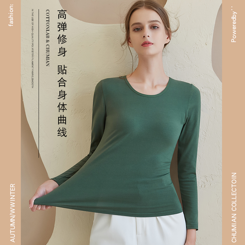 Sashimi Slim Long Sleeve T-Shirt Woman Spring Autumn Slim Fit Inside Lap Pure Cotton Blouse Winter Grey Tight Autumn Clothes Foundation Brief-Taobao